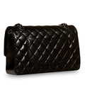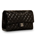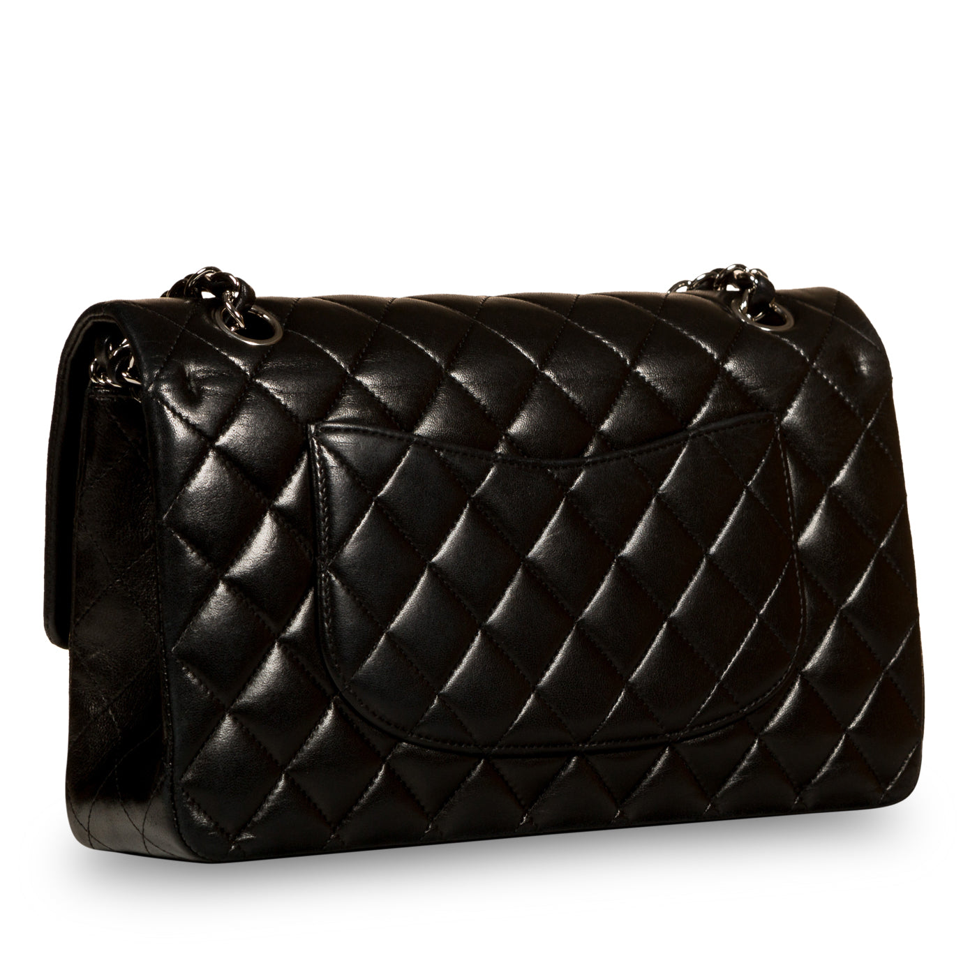 Under the creative direction of Karl Lagerfeld, Chanel continues with its line of classic quilted bags. This special bag is a vintage edition to the modern day versions. The enviable Double Flap bag is crafted in buttery soft lambskin leather, and detailed with fine stitching and silver hardware. The chain is interwoven with leather and can be worn on either a single shoulder strap or doubled up. The classic black colour means this bag fits seamlessly into any wardrobe, and it can stay in there forever! The Classic Flap from Chanel is a true investment piece - in the timeless combination of black and silver.