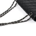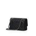 Under the creative direction of Karl Lagerfeld, Chanel continues with its line of classic quilted bags. The enviable Double Flap bag is crafted in hard wearing caviar leather, and detailed with fine stitching and silver hardware. The chain is interwoven with leather and can be worn on either a single shoulder strap or doubled up. The classic black colour means this bag fits seamlessly into any wardrobe, and it can stay in there forever! The Classic Flap from Chanel is a true investment piece - in the timeless combination of black and silver.