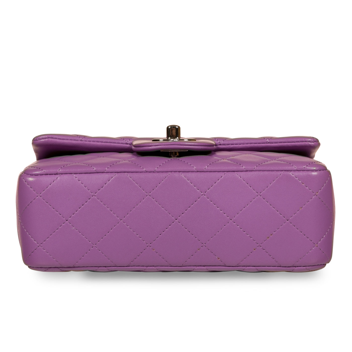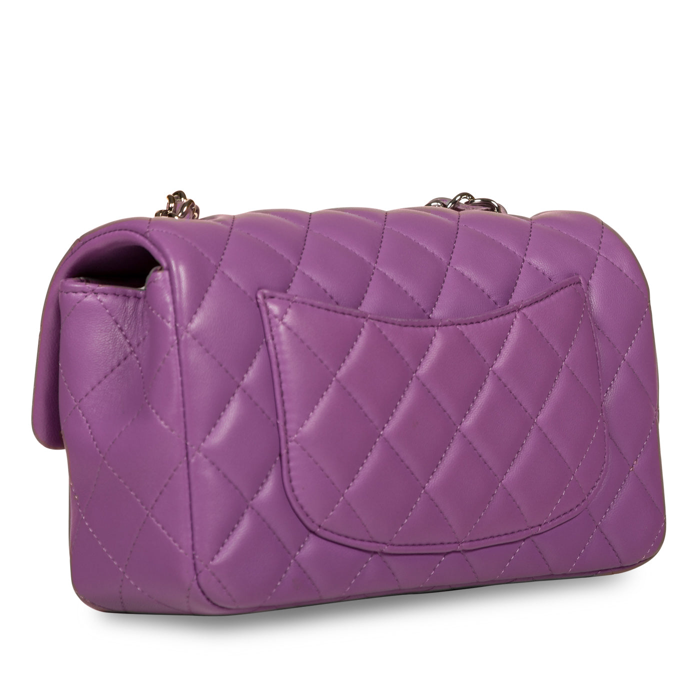 Hello gorgeous...uh...we mean flawless. The mini rectangle flap bag is...an absolute vision. We love her, to say the very least. Crafted from Chanel's classic quilted Purple lambskin leather with Silver tone hardware, this perfect little baby is definitely hard to get your hands on. The perfect accessory for basically anything, this mini Chanel is the ideal compliment to any outfit for any occasion. Wear her with a cocktail dress and a pair of heels, or with black trousers with a silk blouse, or even with a pair of jeans and a basic tee - no matter what, this gorgeous bag is a suitable compliment. I mean, you can basically wear a plastic bag and you'll still look bomb with the mini rectangle by your side. A bag you'll wear and love forever, investing in a Classic Flap is always a good idea given that they rarely cease to lose their value. A timepiece you can pass down from generation to generation, the mini rectangle flap bag is bag every woman simply needs in her life - I mean, come on! Think about your granddaughter!