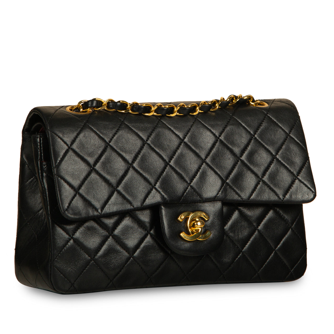 Crafted from Chanel's signature black lambskin leather, this vintage gem is an absolute must-have for any woman with a love for luxury. Featuring the brand's infamous interwoven chain / leather shoulder strap, double flap, and gold tone hardware, this classic bag is the perfect balance between fashion and function. Practical as well as stylish, this bag is a timeless piece that will remain in your wardrobe forever. The ideal accessory to take you from day to night, there's not much this bag won't go with. The perfect compliment to absolutely anything in your wardrobe, this Chanel vintage flap bag is one you'll never fall out of love with. A well-worthy addition to any luxury handbag collection, this gorgeous investment piece is a necessity for anyone with heart eyes for Chanel and even bigger heart eyes for all things vintage. Sleek, stylish and sophisticated, this bag is one you just need in your life.