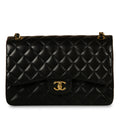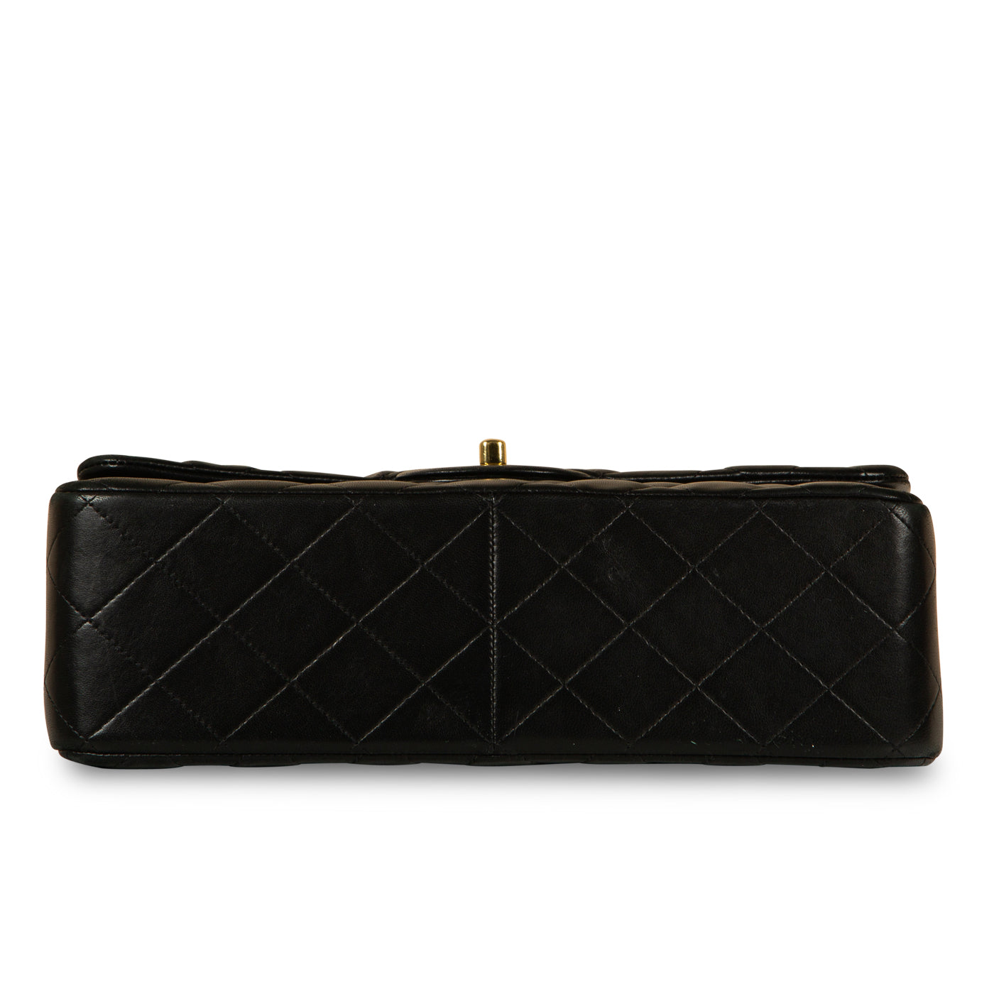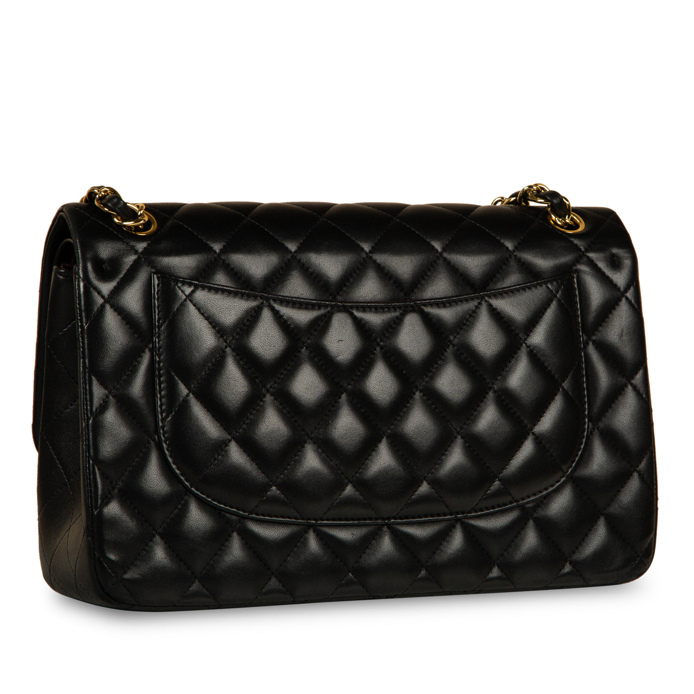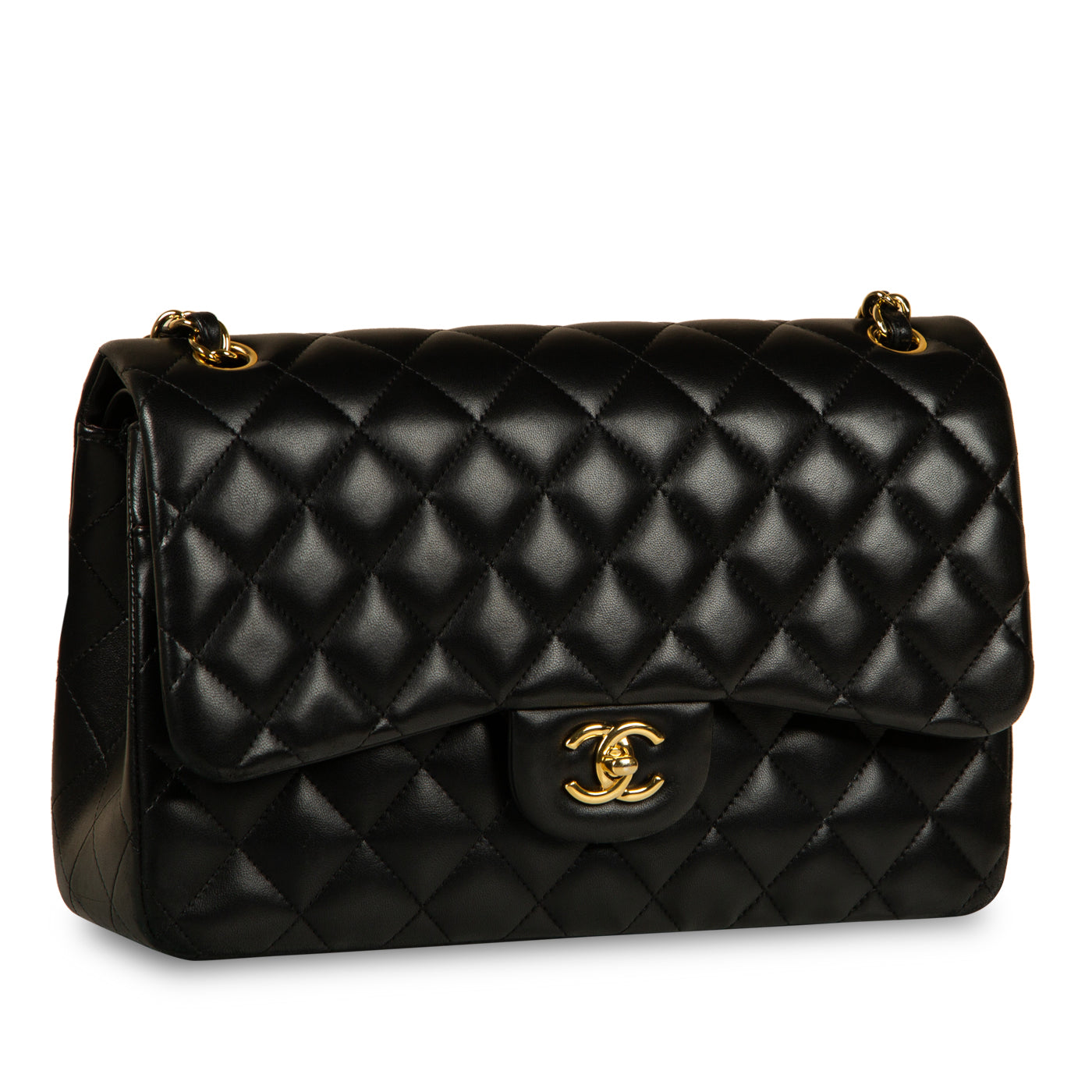 Chanel continues to present its signature line of Classic Flap bags. Under the creative direction of Karl Lagerfeld, the Classic Flap is perhaps the most acclaimed bag in all of fashion history. Timeless, elegant and sophisticated, it's no wonder the Classic Flap is, well, a classic. Featuring its renowned buttery soft lambskin leather and interwoven chain/leather strap, the Jumbo is an absolute must-have in any luxury handbag collection. Not only is this highly coveted, stunning black bag the perfect complement to pretty much anything you have in your wardrobe, but it's also an investment piece that will never lose its value. Embodying elegance and traditional femininity to a T, a Chanel bag is a purchase you won't ever regret.
