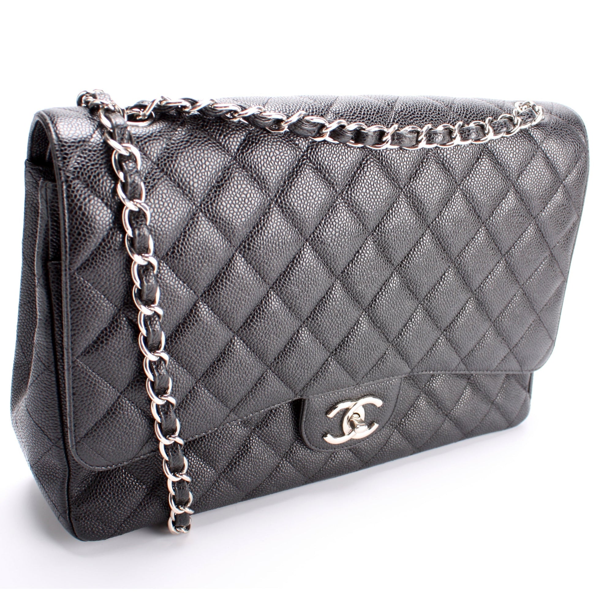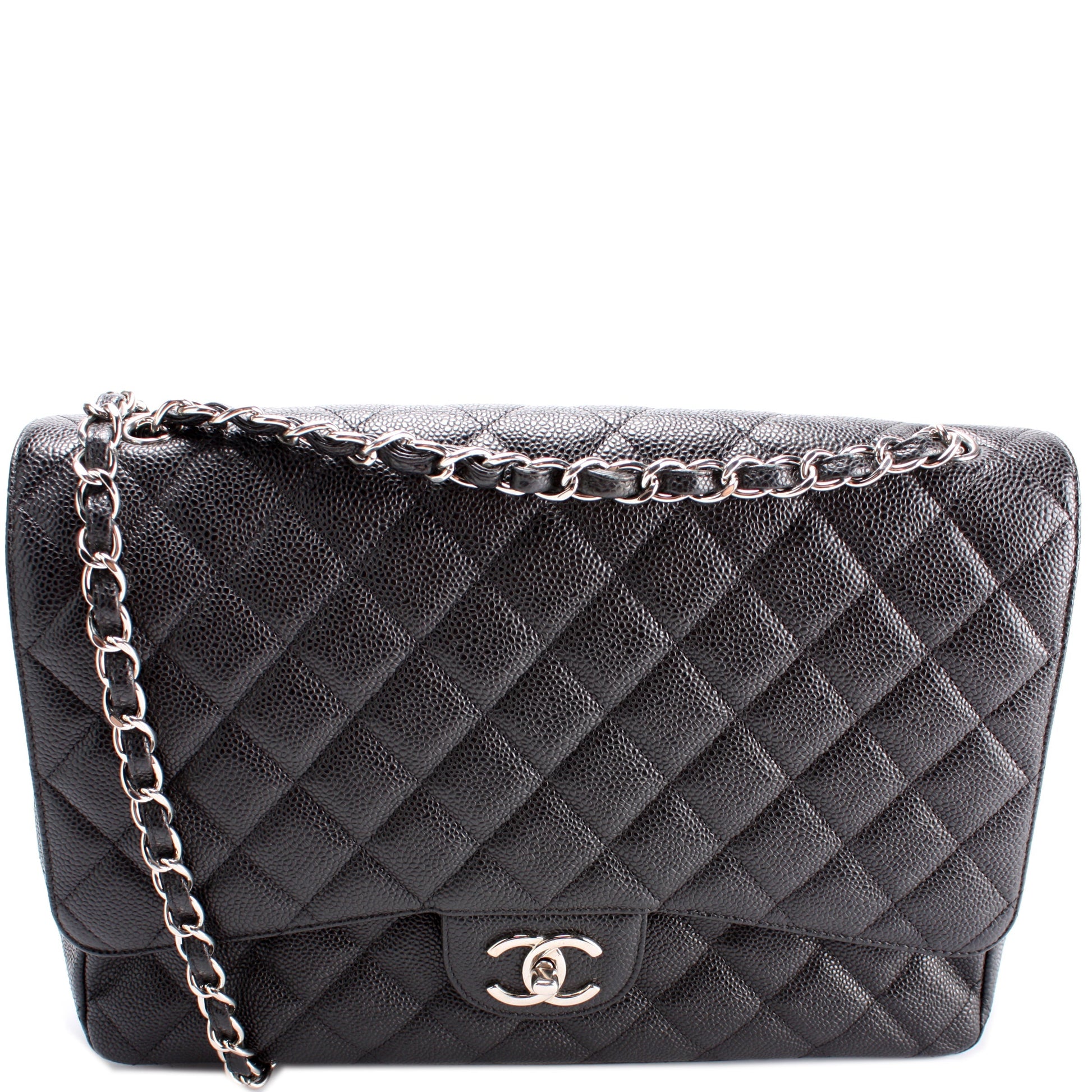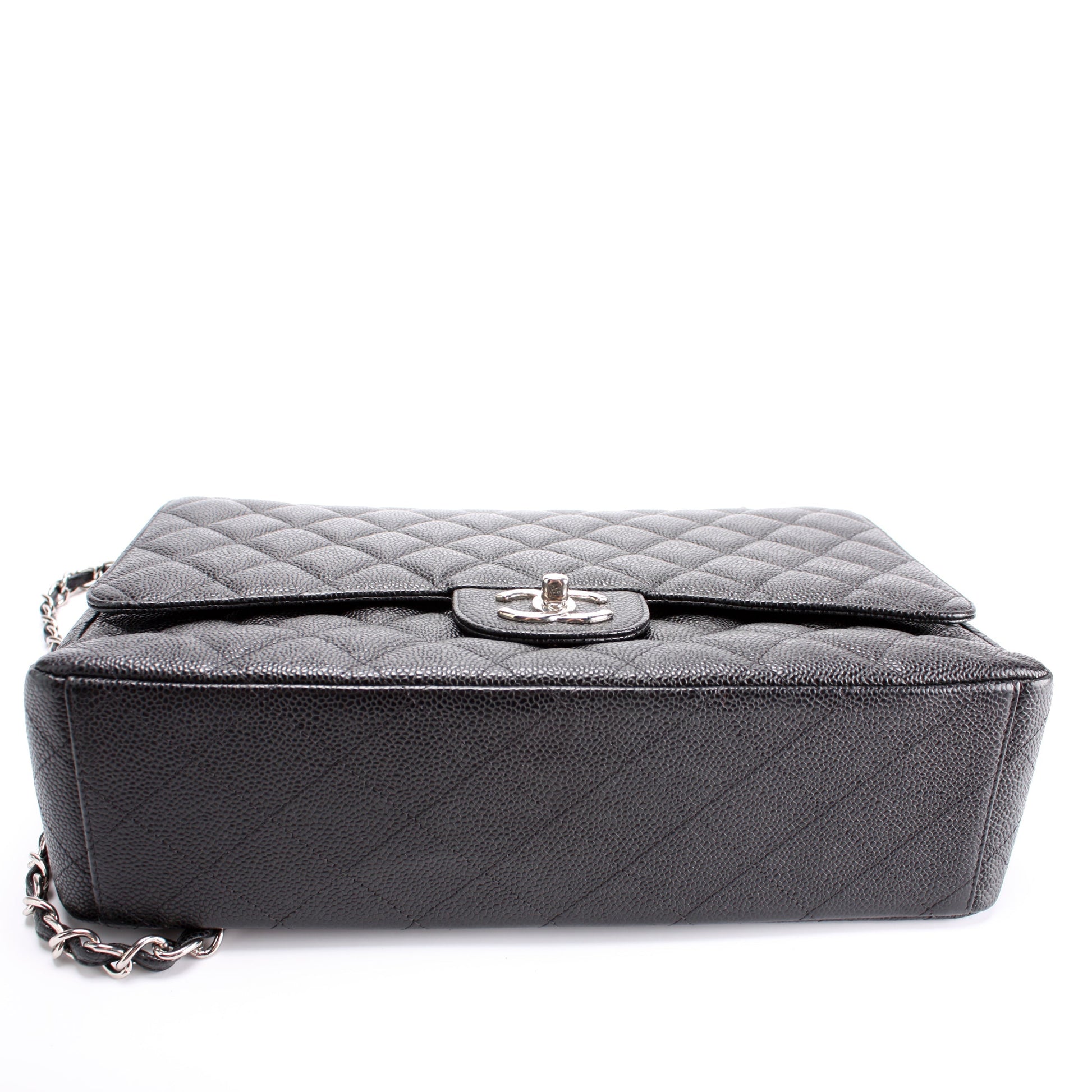 This Chanel Classic Flap Maxi 17-20Mis eye catching bag. The exterior is in the classic Chanel Caviar leather.