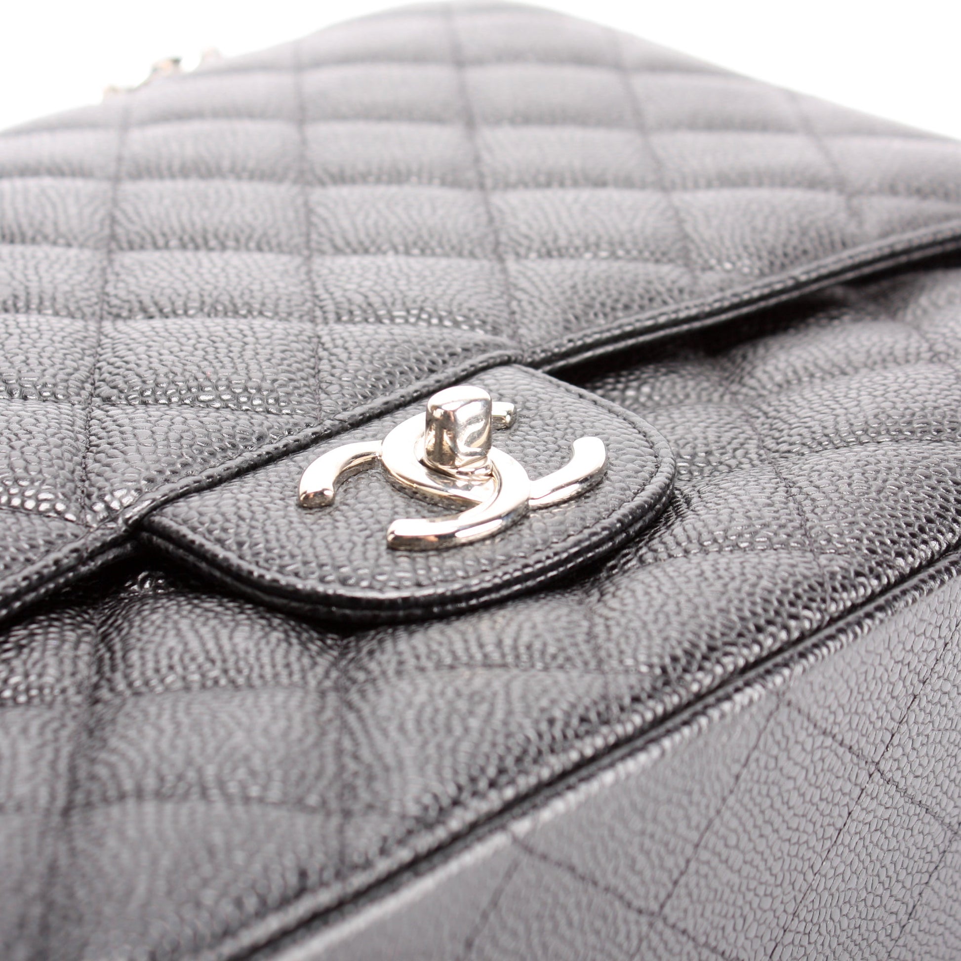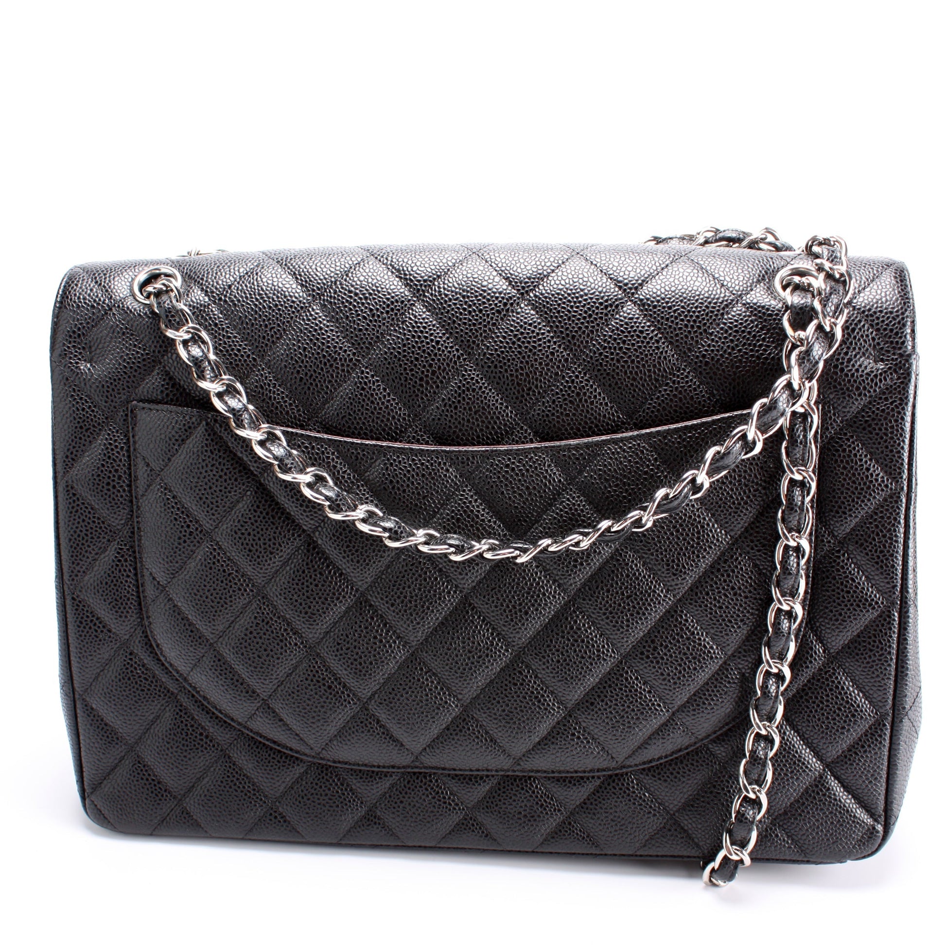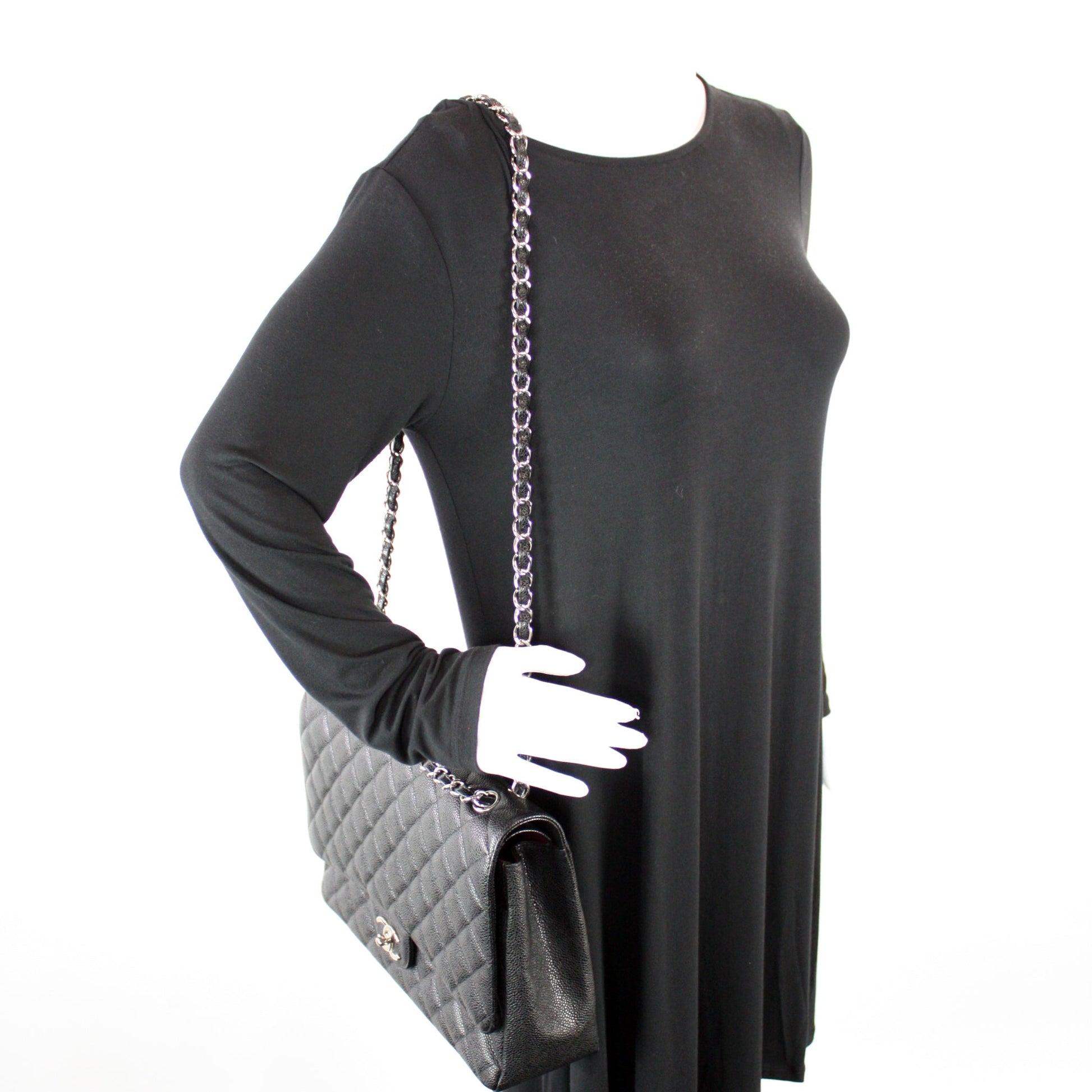 This Chanel Classic Flap Maxi 17-20Mis eye catching bag. The exterior is in the classic Chanel Caviar leather.