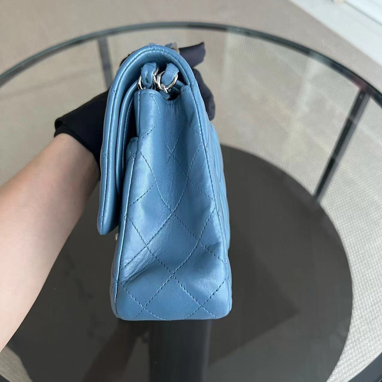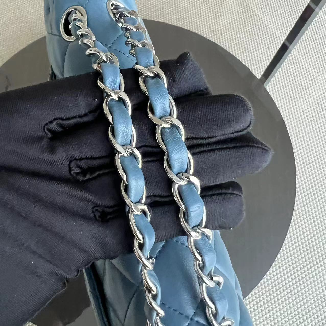 Classic Flap Medium 25CM Quilted Lambskin Blue Silver Hardware Series 17