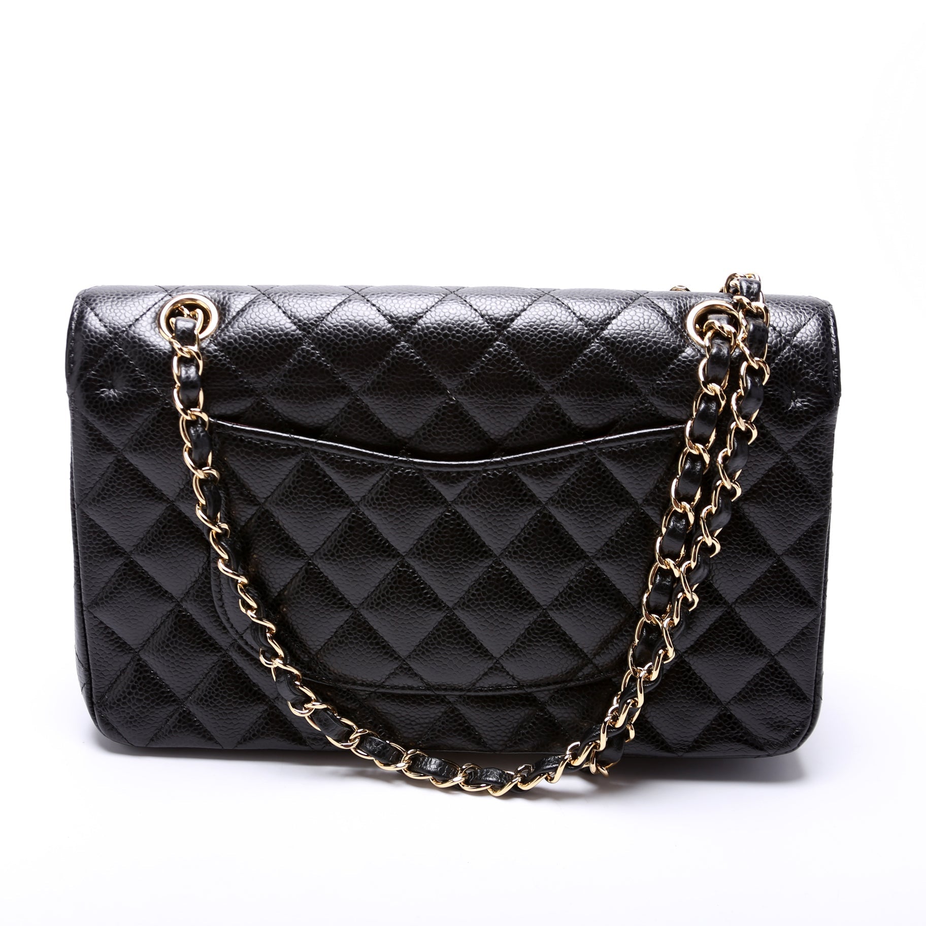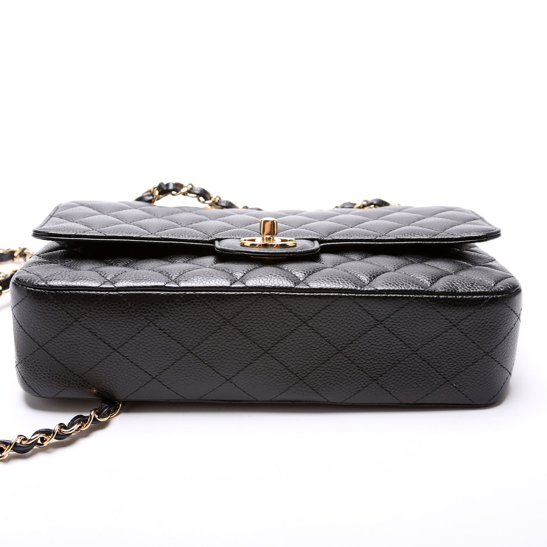 This Chanel Classic Medium Flapis eye catching bag. The exterior is in the classic caviar leather.