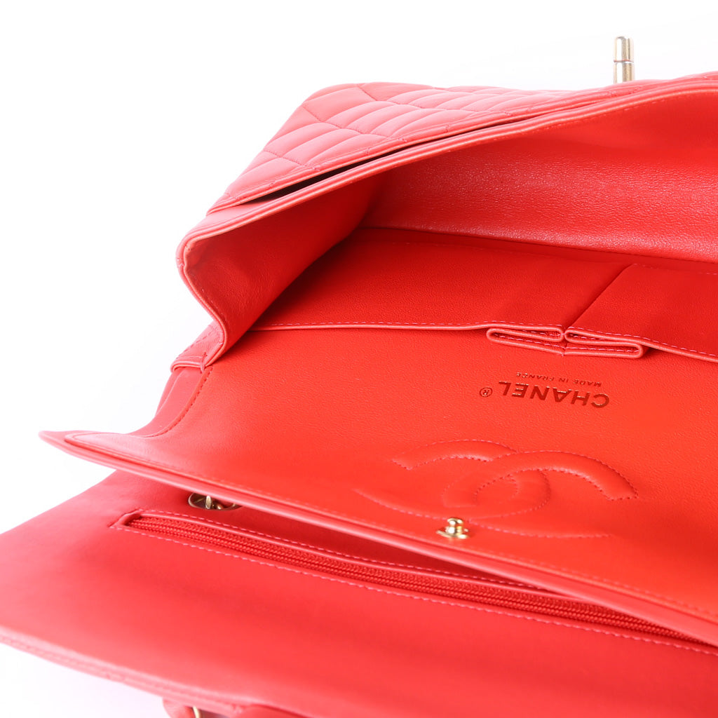 This Chanel Classic Flap Medium is d 100% . The exterior is in the classic Chanel Lambskin leather.