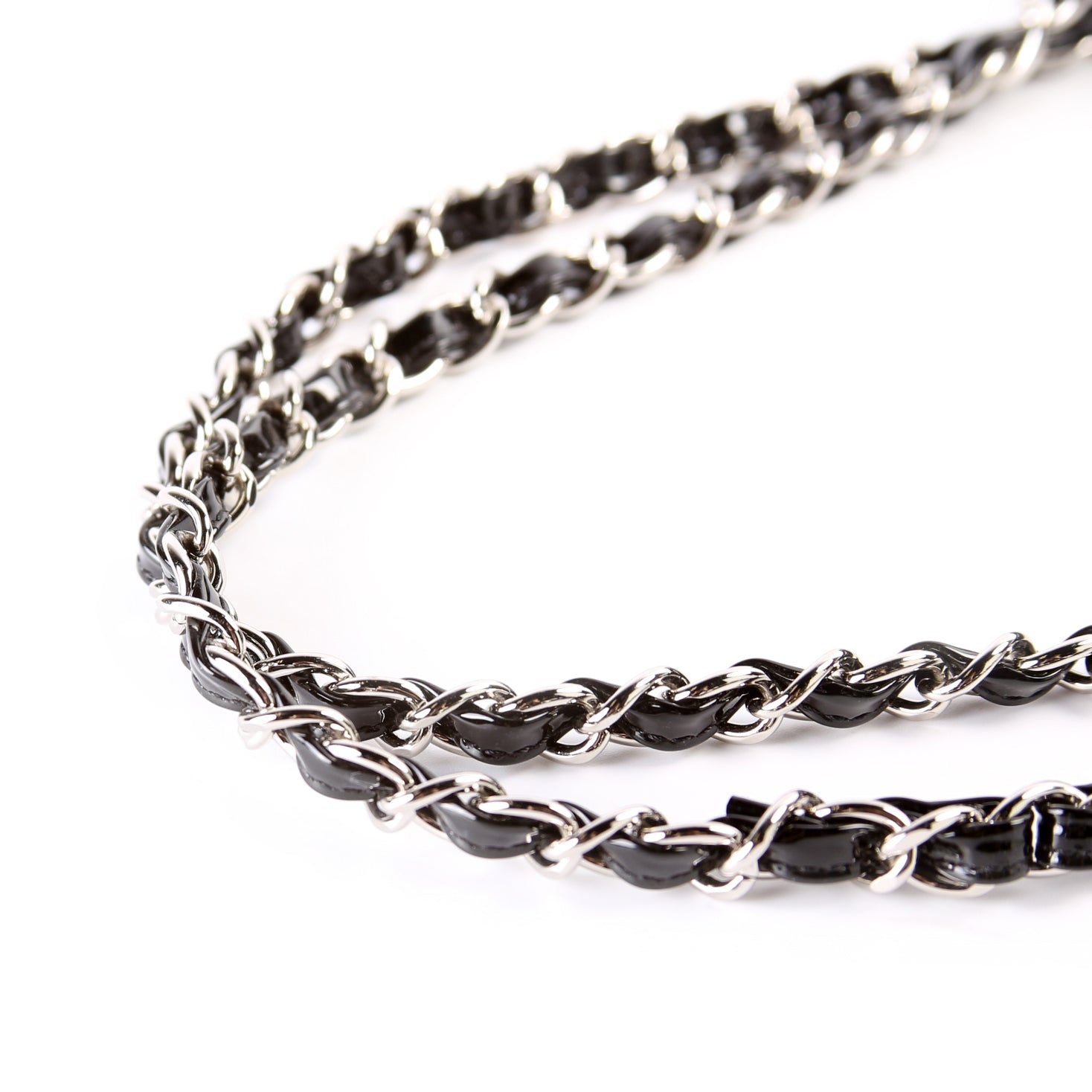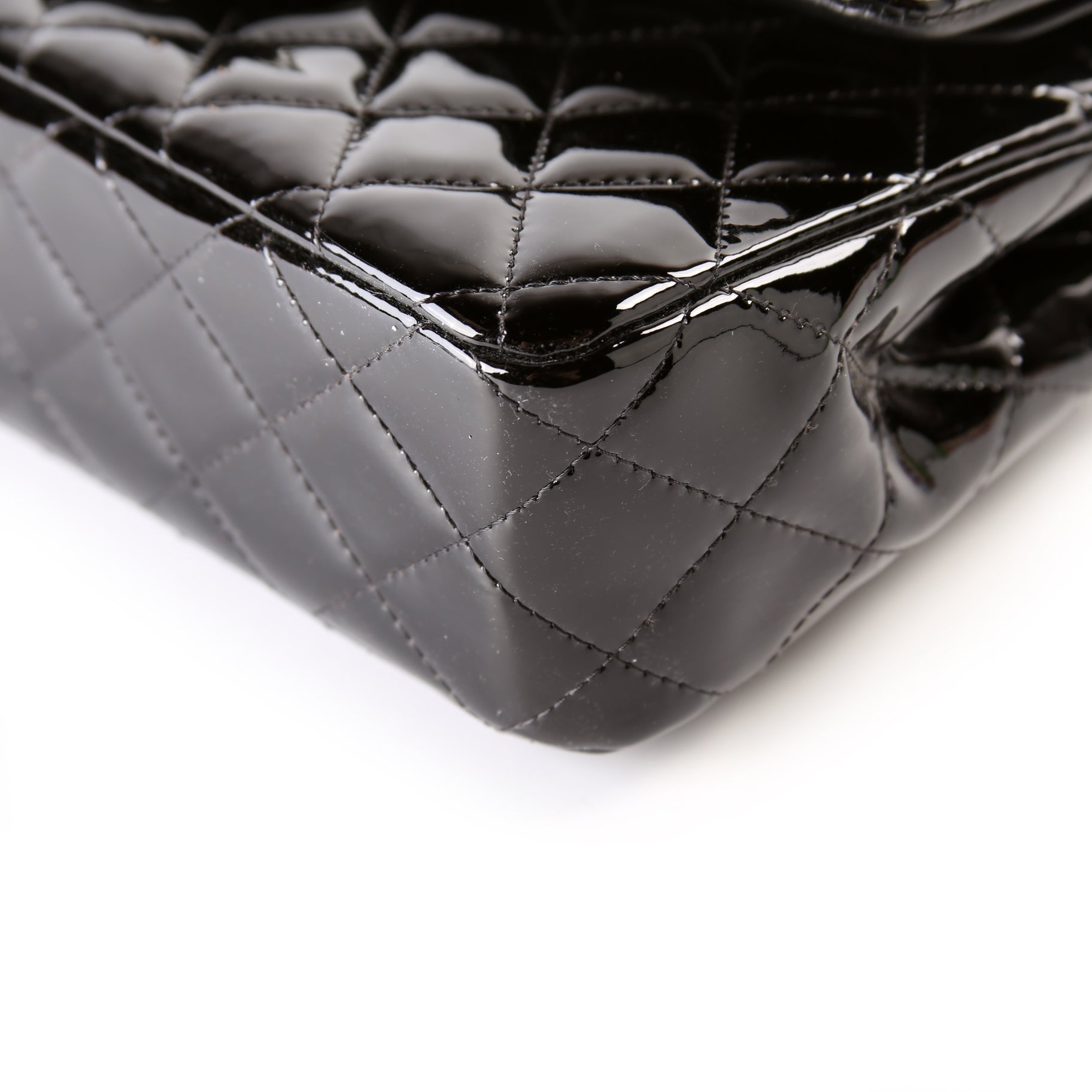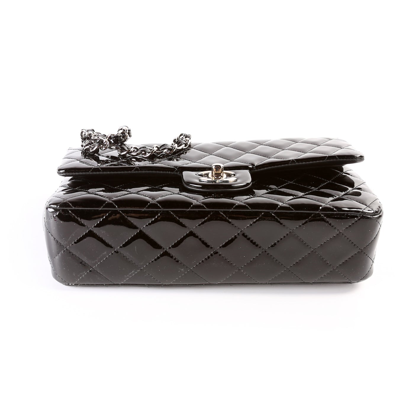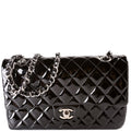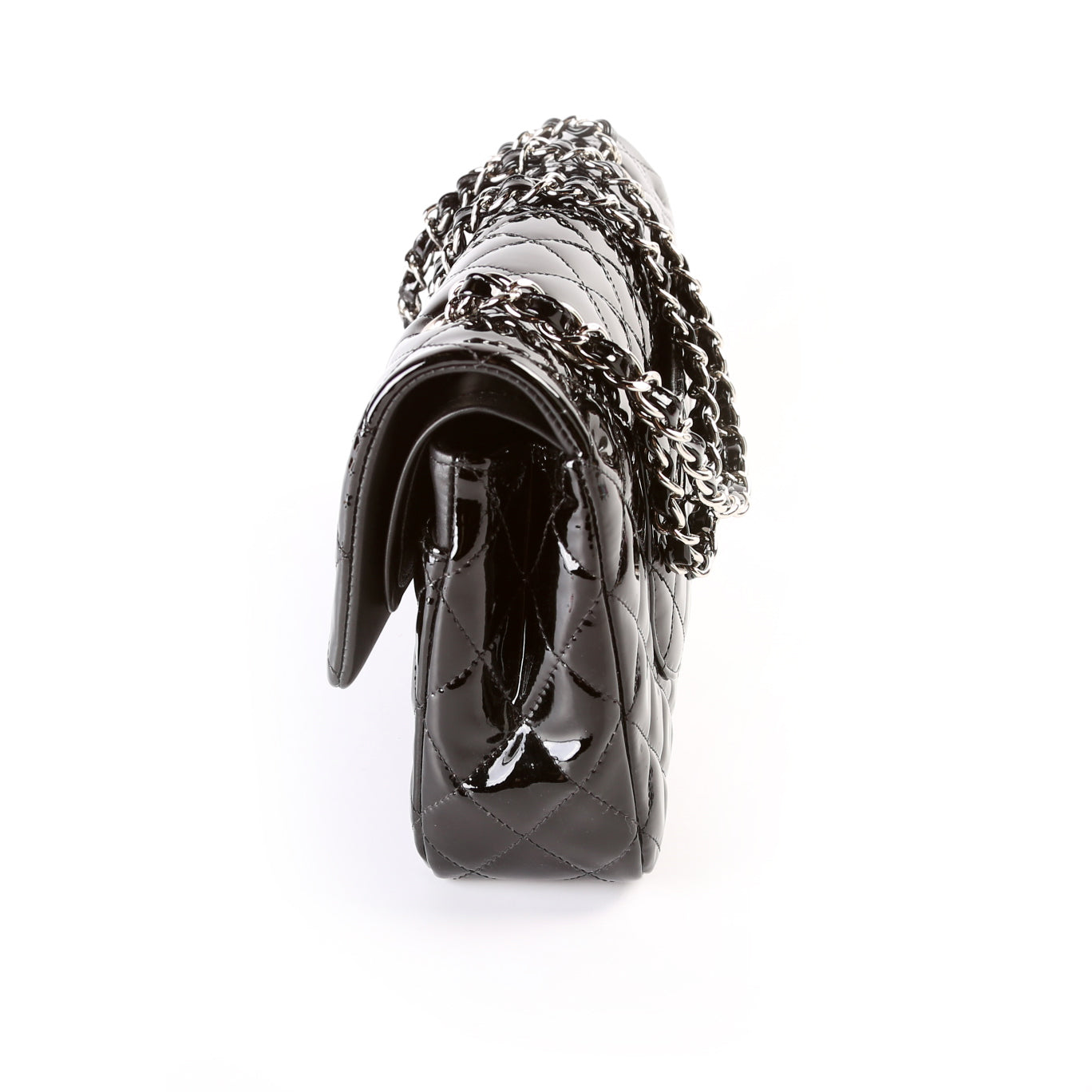 This Chanel Classic Flap Mediumis eye catching bag. The exterior is in the classic Chanel Patent leather.