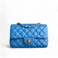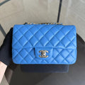 Classic Flap Mini Rectangle 20 CM Quilted Lambskin Blue Golden Hardware Series 27
