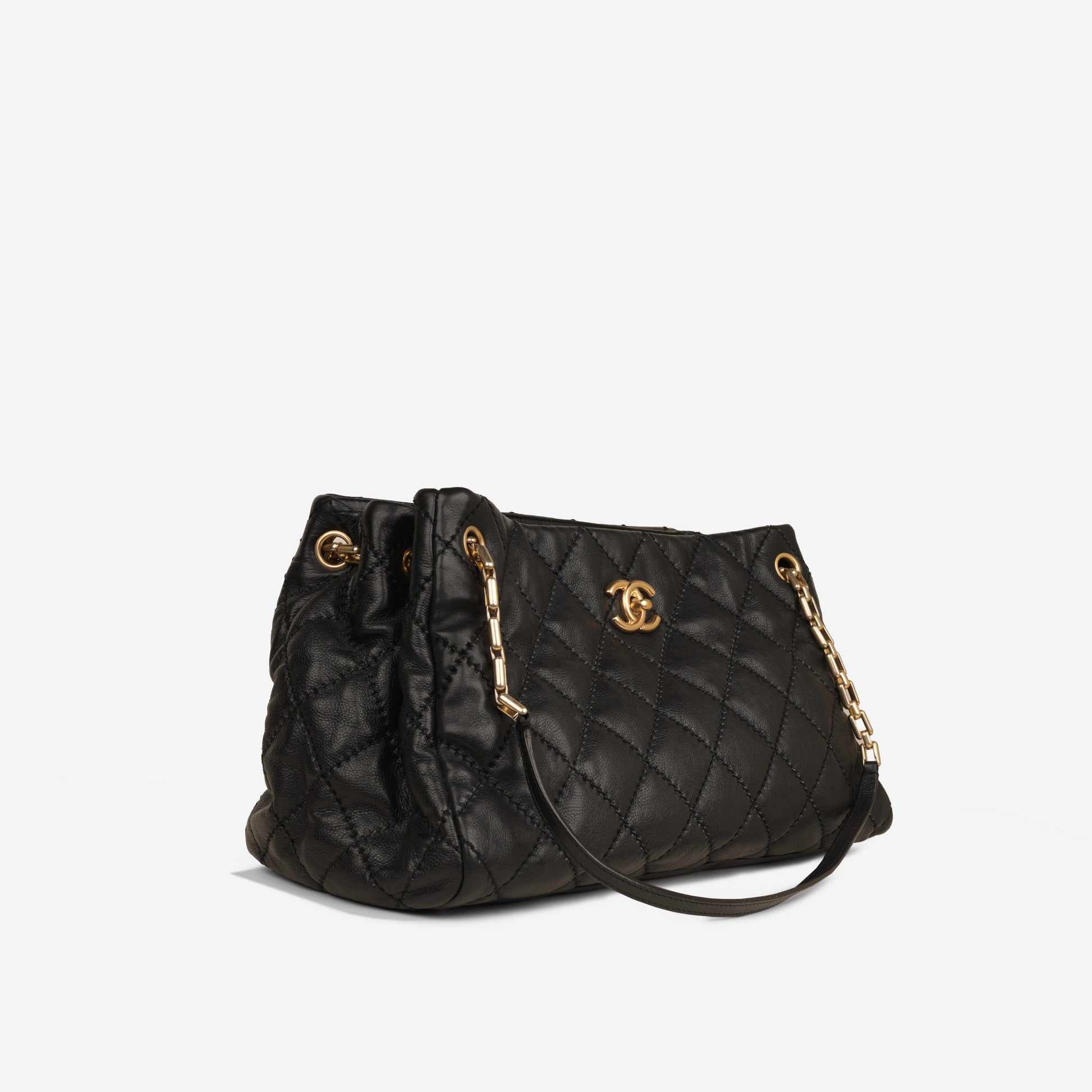 - Black quilted lambskin leather