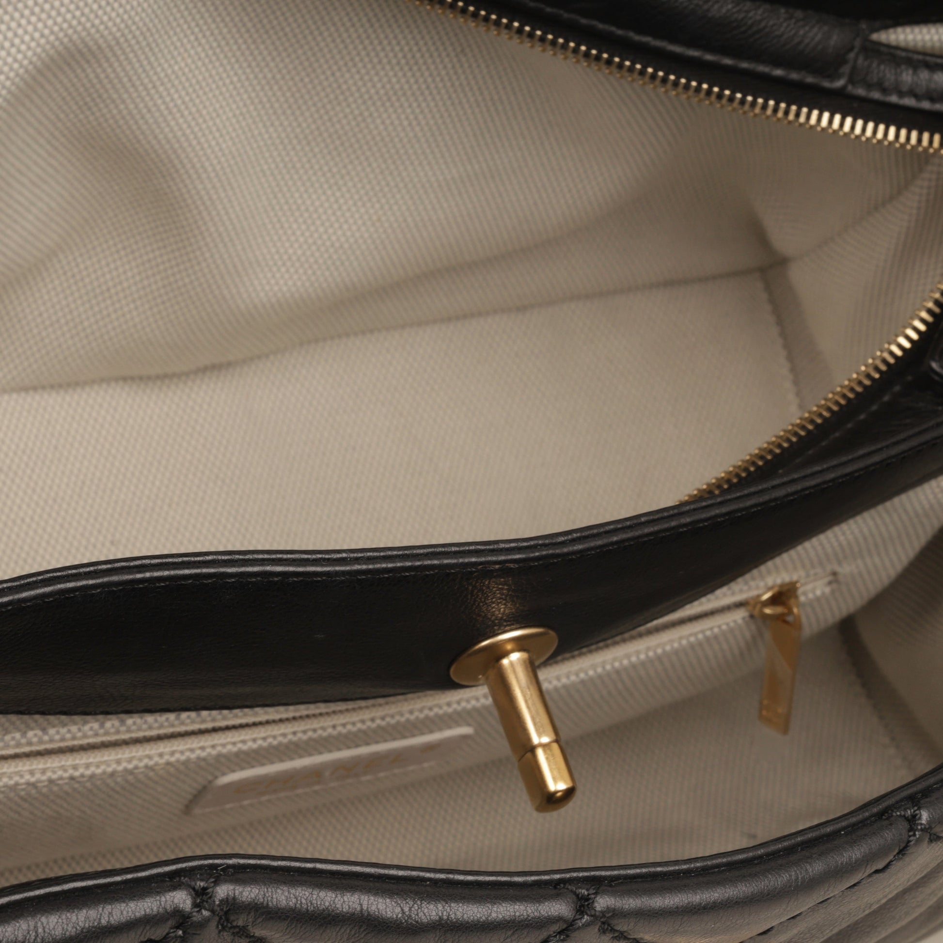 - Black calfskin / Beige fabric lining