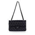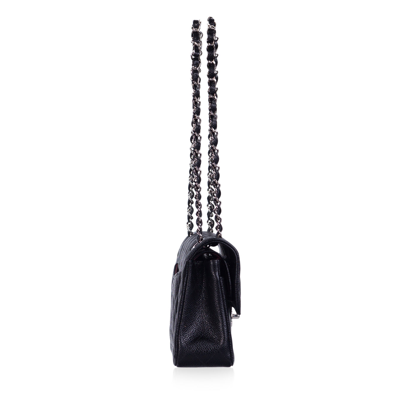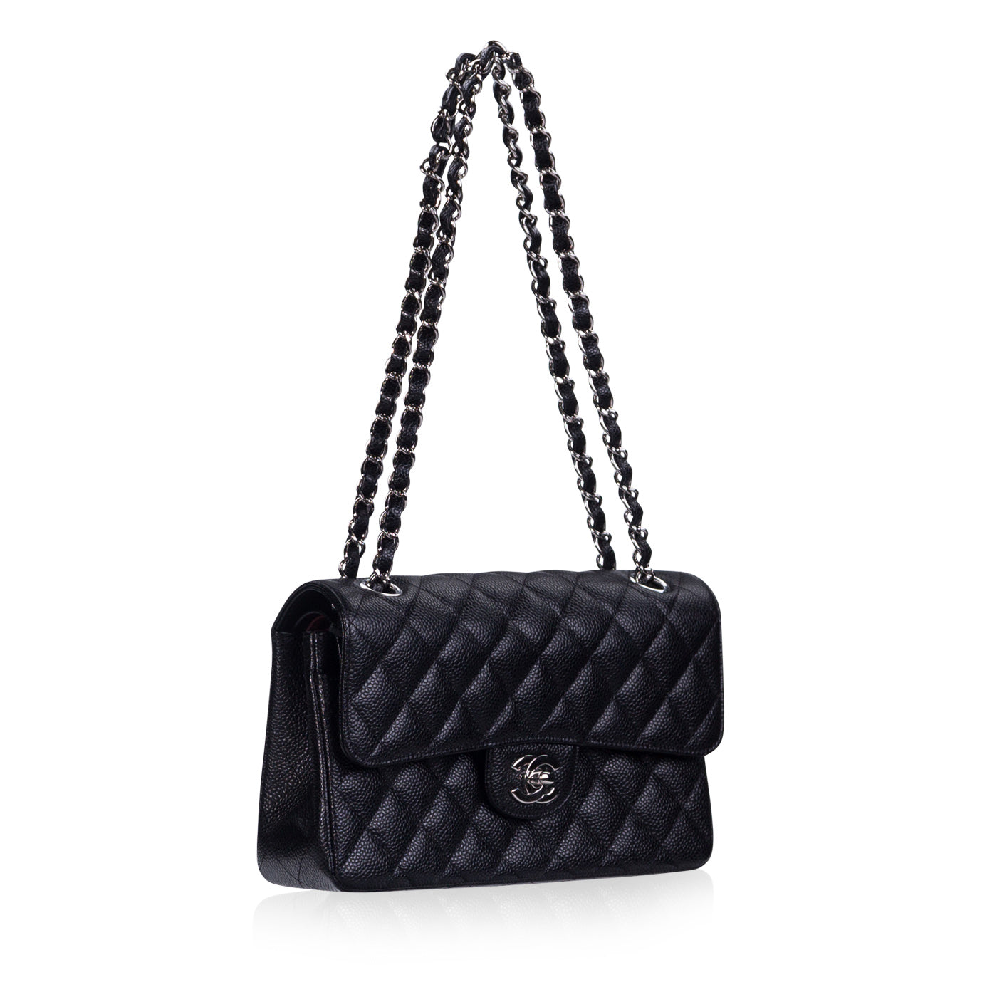 Under the creative direction of Karl Lagerfeld, Chanel continues with its line of classic quilted bags. The enviable Double Flap bag is crafted in Chanel's signature "caviar" leather, and detailed with fine stitching and silver hardware. The chain is interwoven with leather and can be worn on either a single shoulder strap or doubled up. The neutral color means this bag fits seamlessly into any wardrobe, and it truly can stay in there forever! The Classic Flap from Chanel is a true investment piece - especially in it's most coveted colour combination of Black & Silver!
