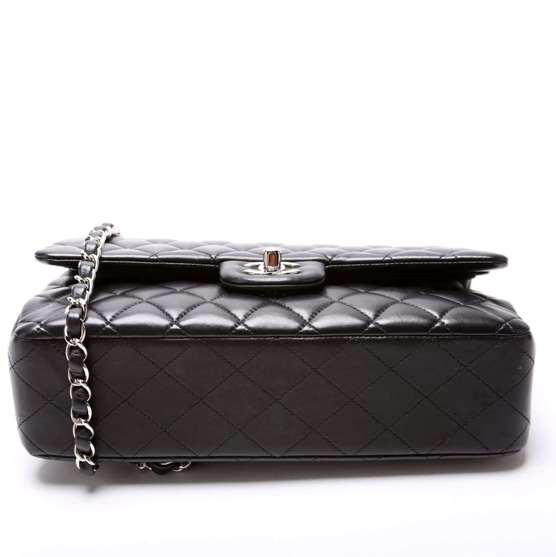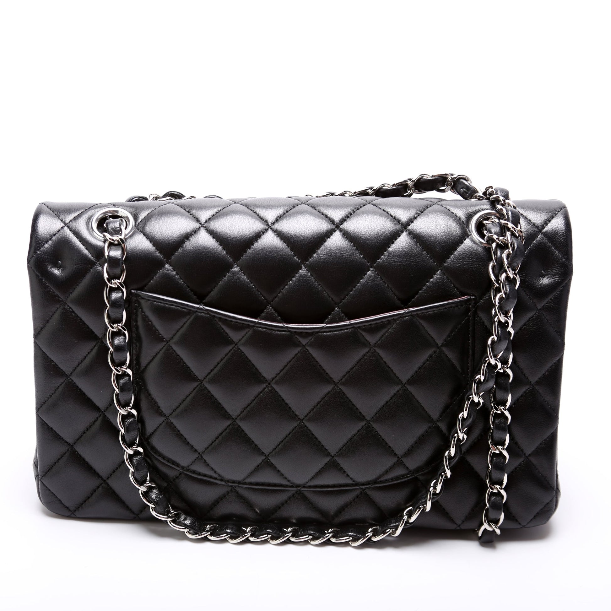 This Chanel Classic Flap Mediumis eye catching bag. The exterior is in the classic Chanel Lambskin leather.