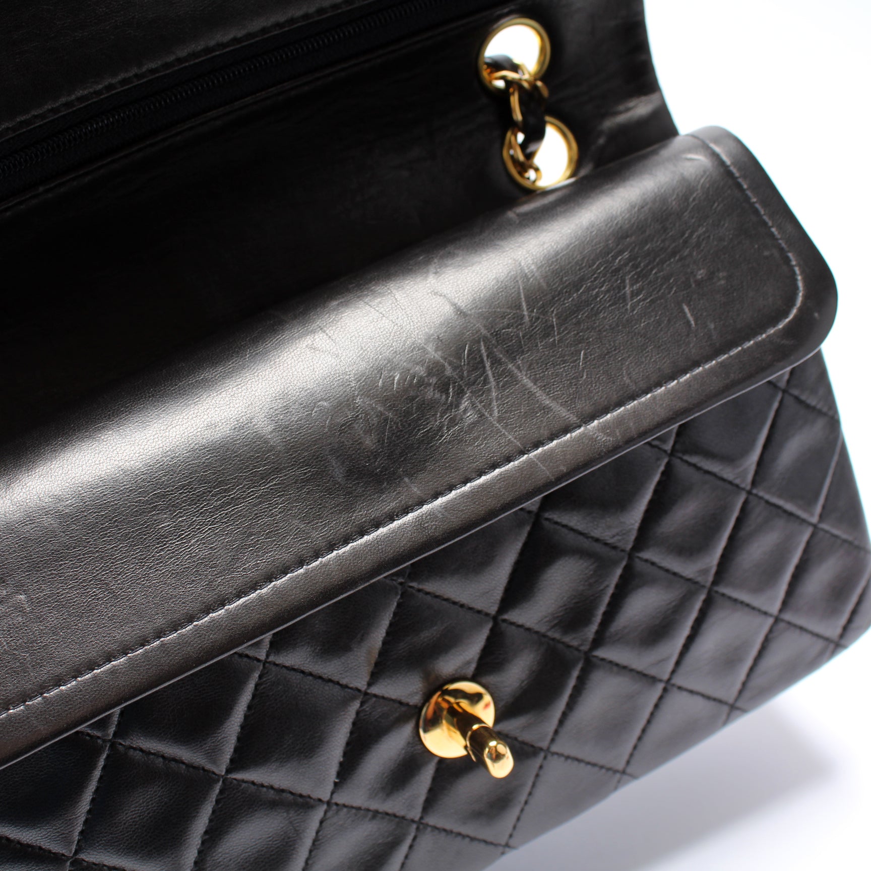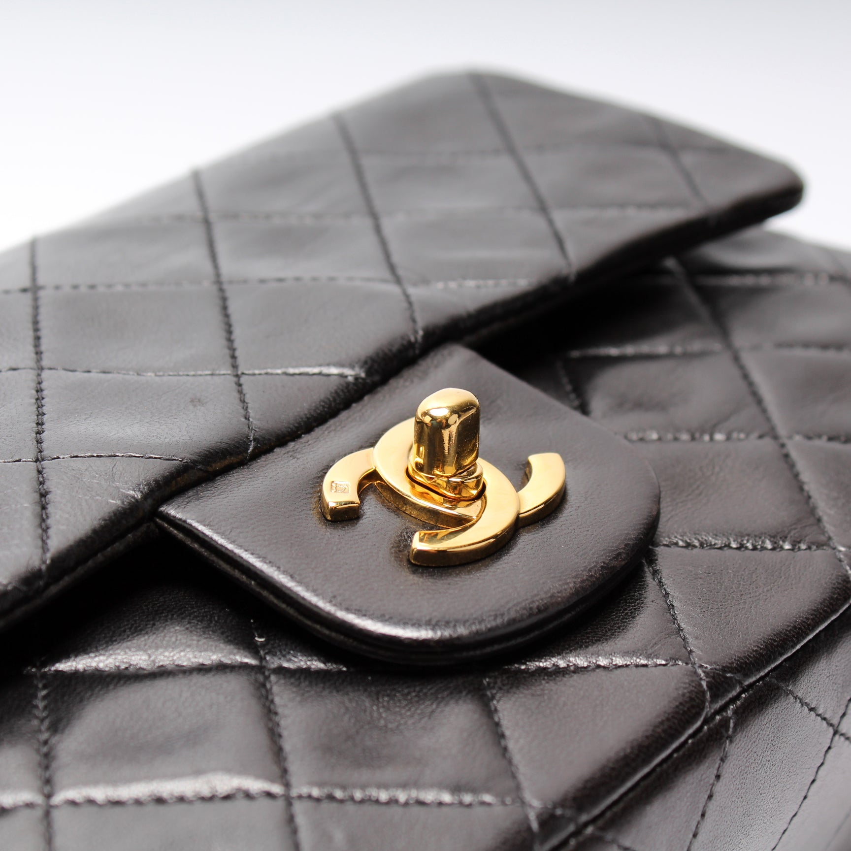 This Chanel Classic Flap Smallis eye catching bag. The exterior is in the classic Chanel Lambskin leather.