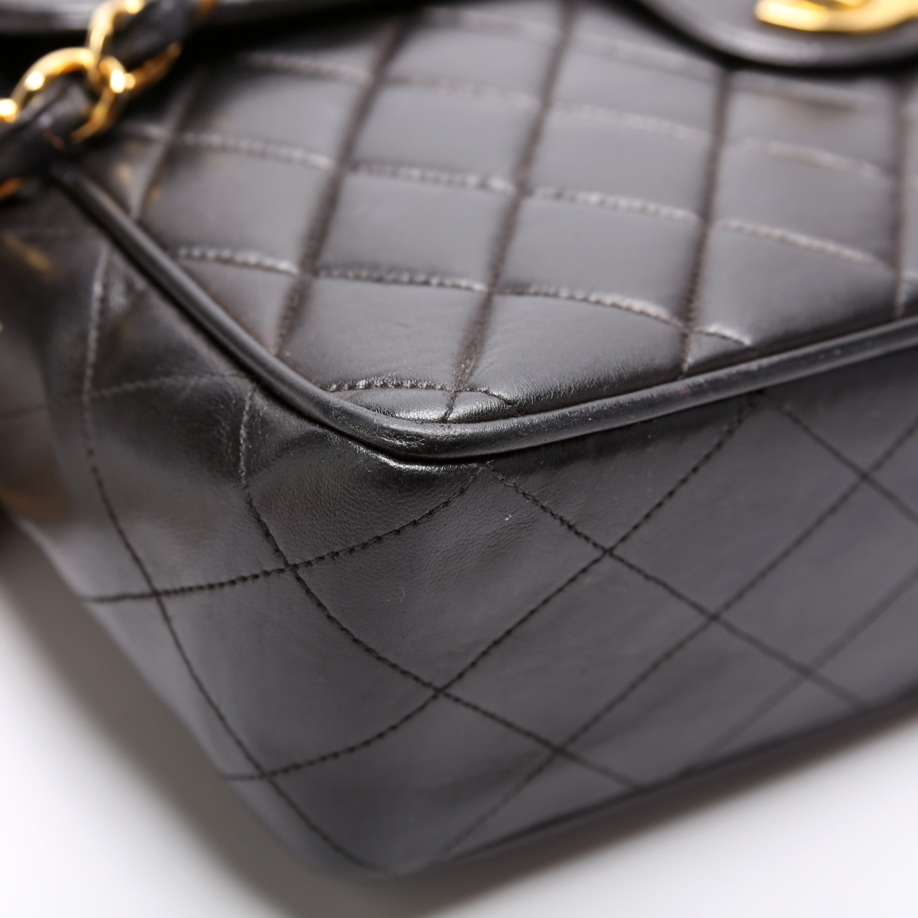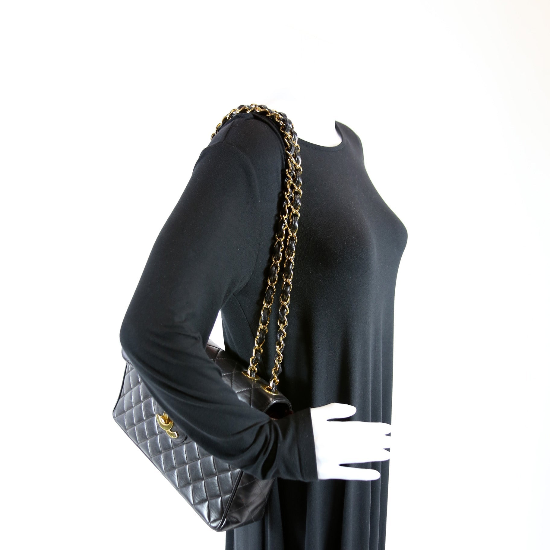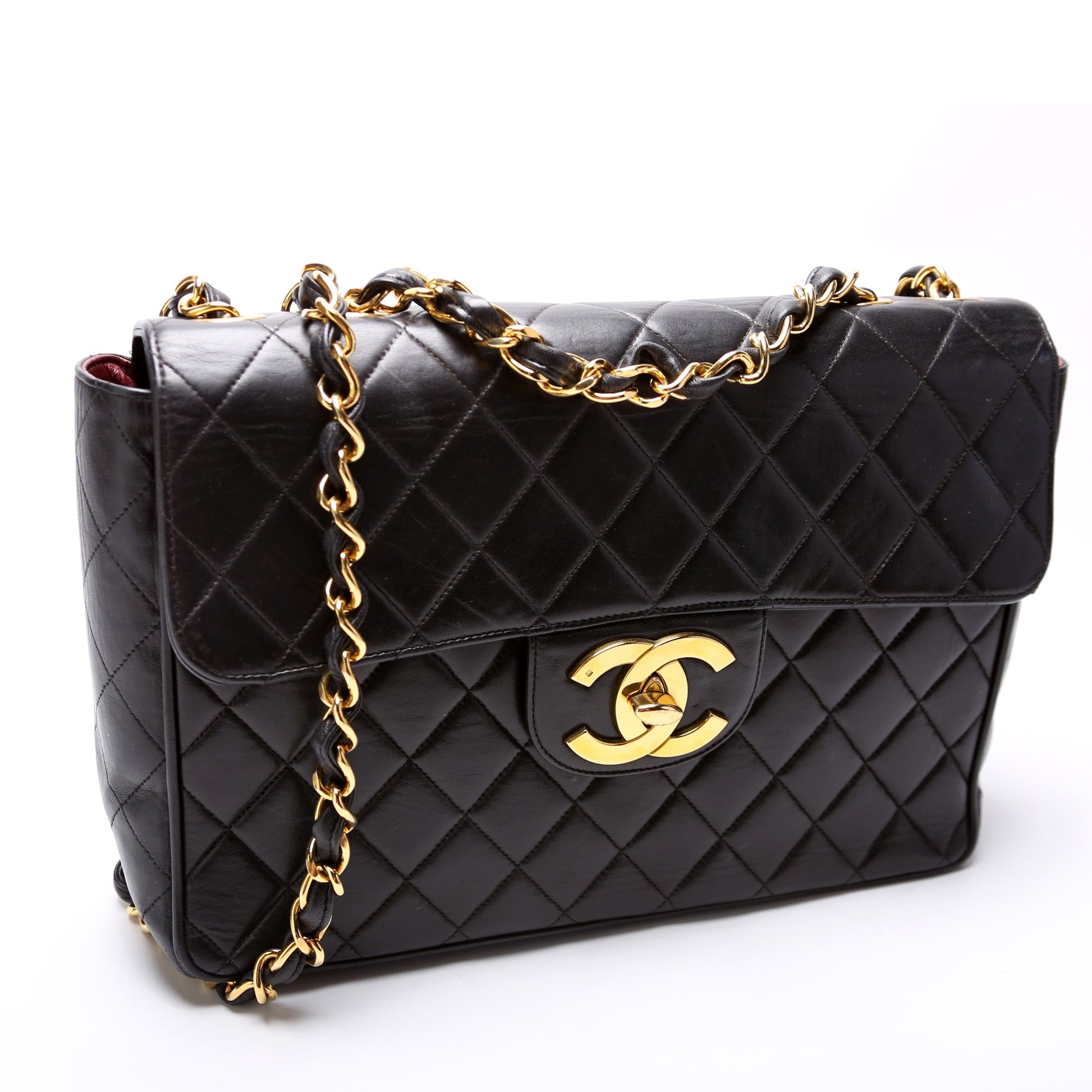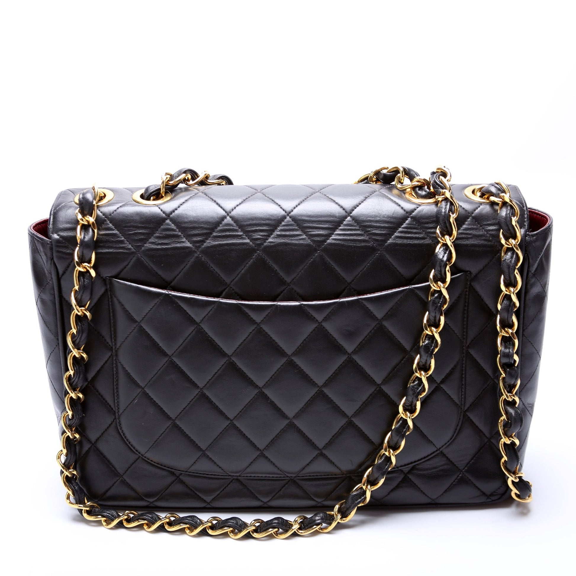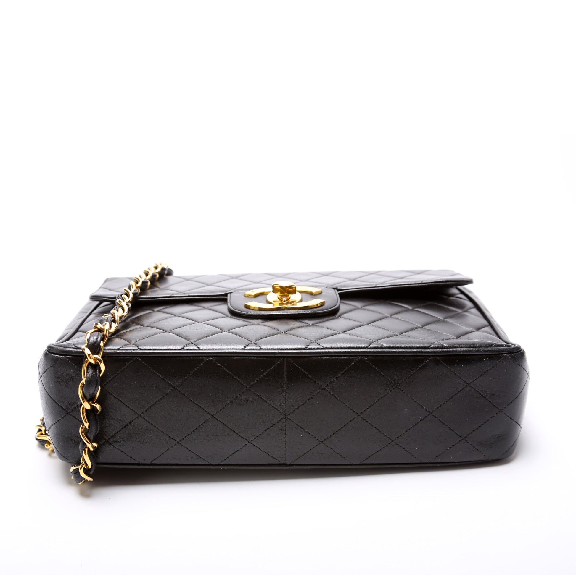 This Chanel Classic Flap XL Jumbois eye catching bag. The exterior is in the classic Chanel Lambskin Leather.
