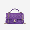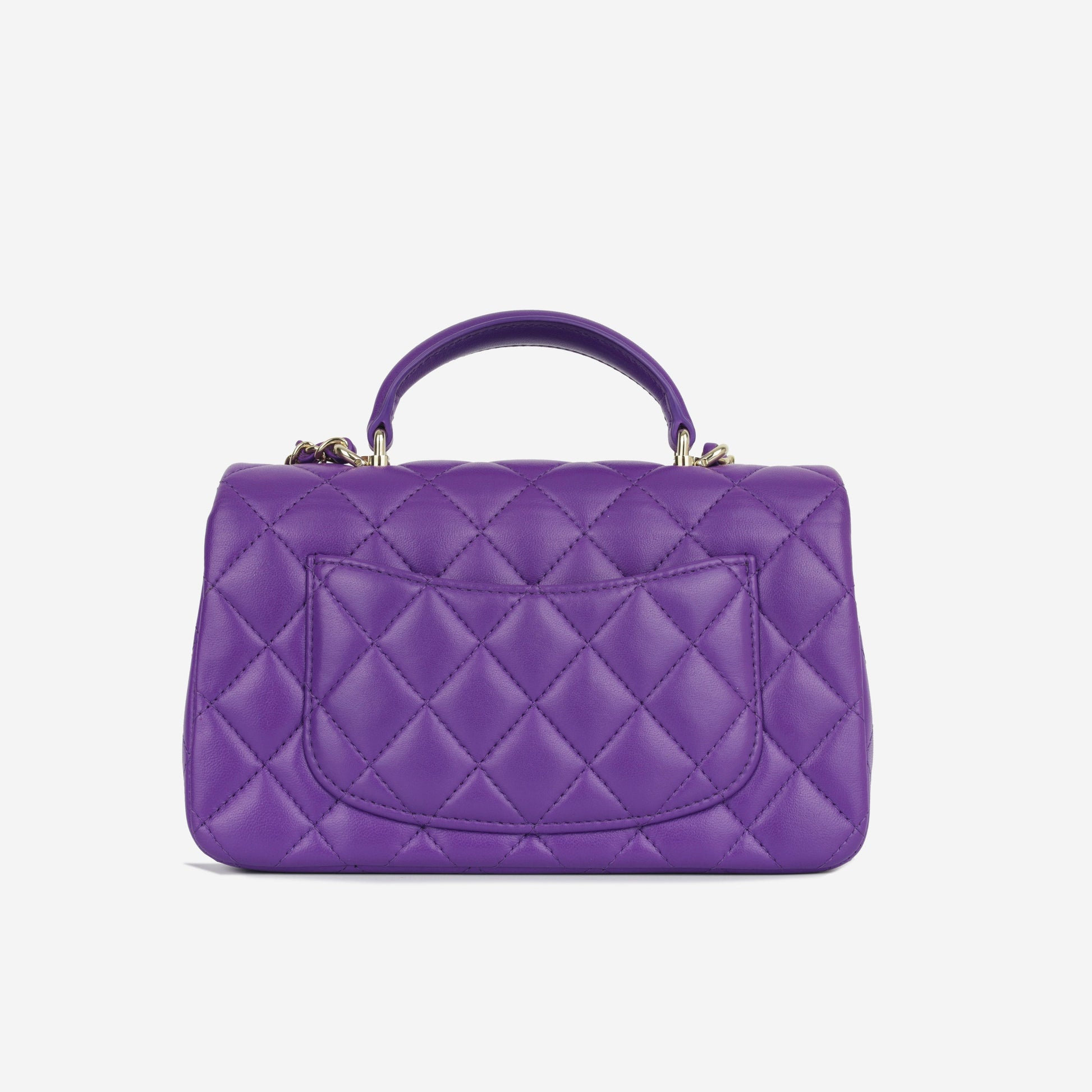 The mini rectangular Chanel flap bag comes with an updated feature of the top handle. Crafted from lambskin leather and coupled with champagne gold-tone hardware, this little Chanel is definitely hard to get your hands on.