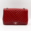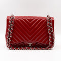 Classic Single Flap Jumbo Red Chevron Patent Silver