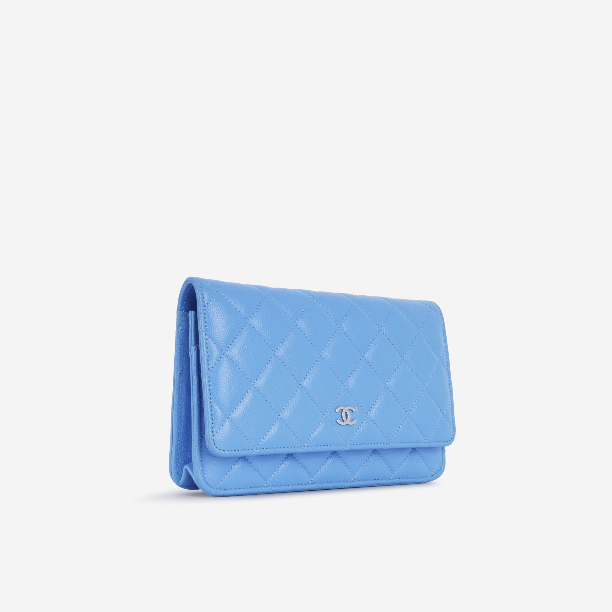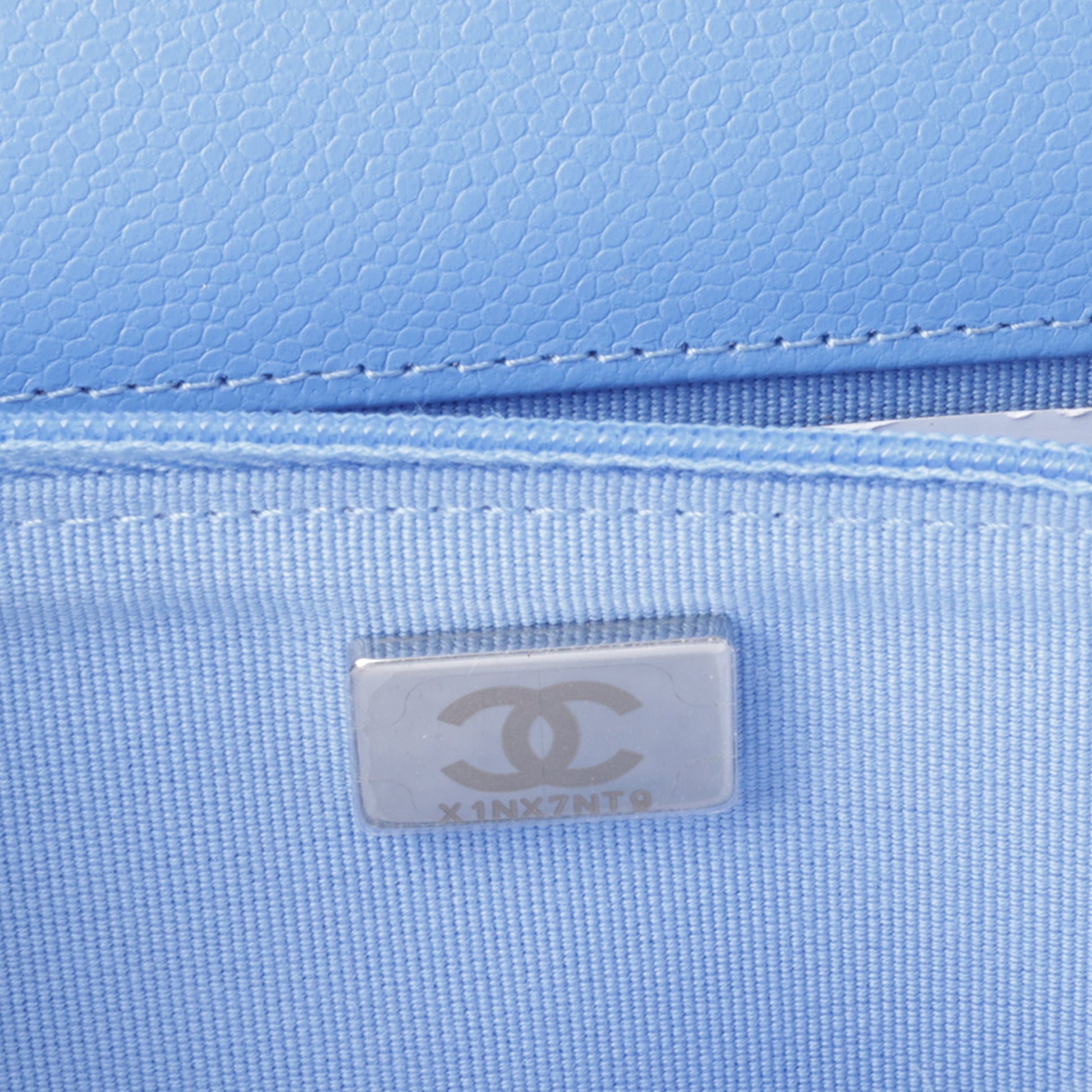 - Sky blue quilted caviar Leather