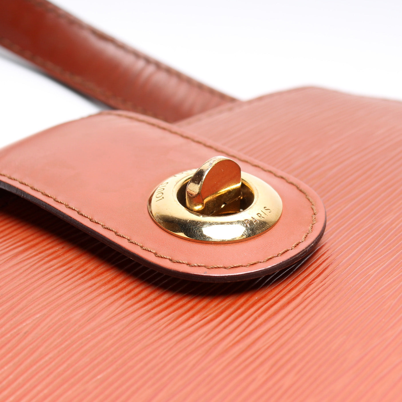 This Louis Vuitton Cluny Shoulder Bag Vintageis eye catching bag. The exterior is in the classic Louis Vuitton Epi Leather.