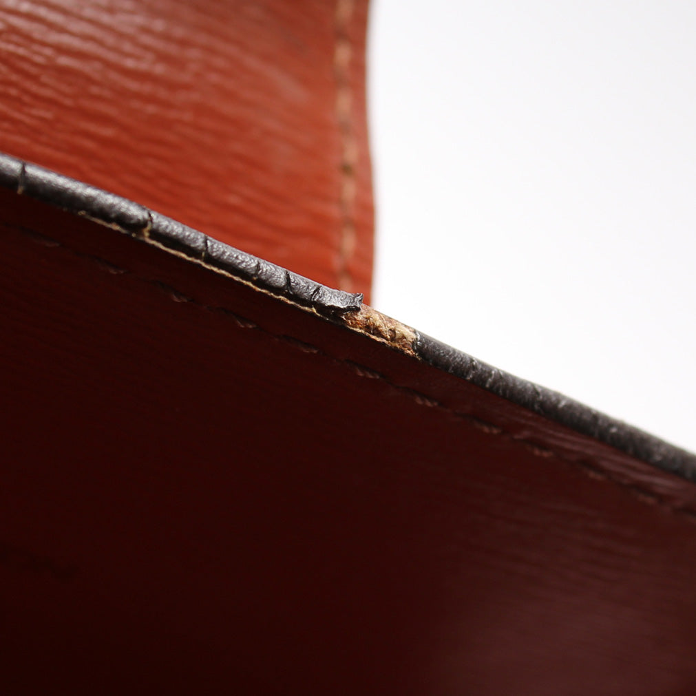 Exterior: The exterior leather is free of any rips or cracks, there are minor scuffs throughout. The corners and pipping show minor wear.