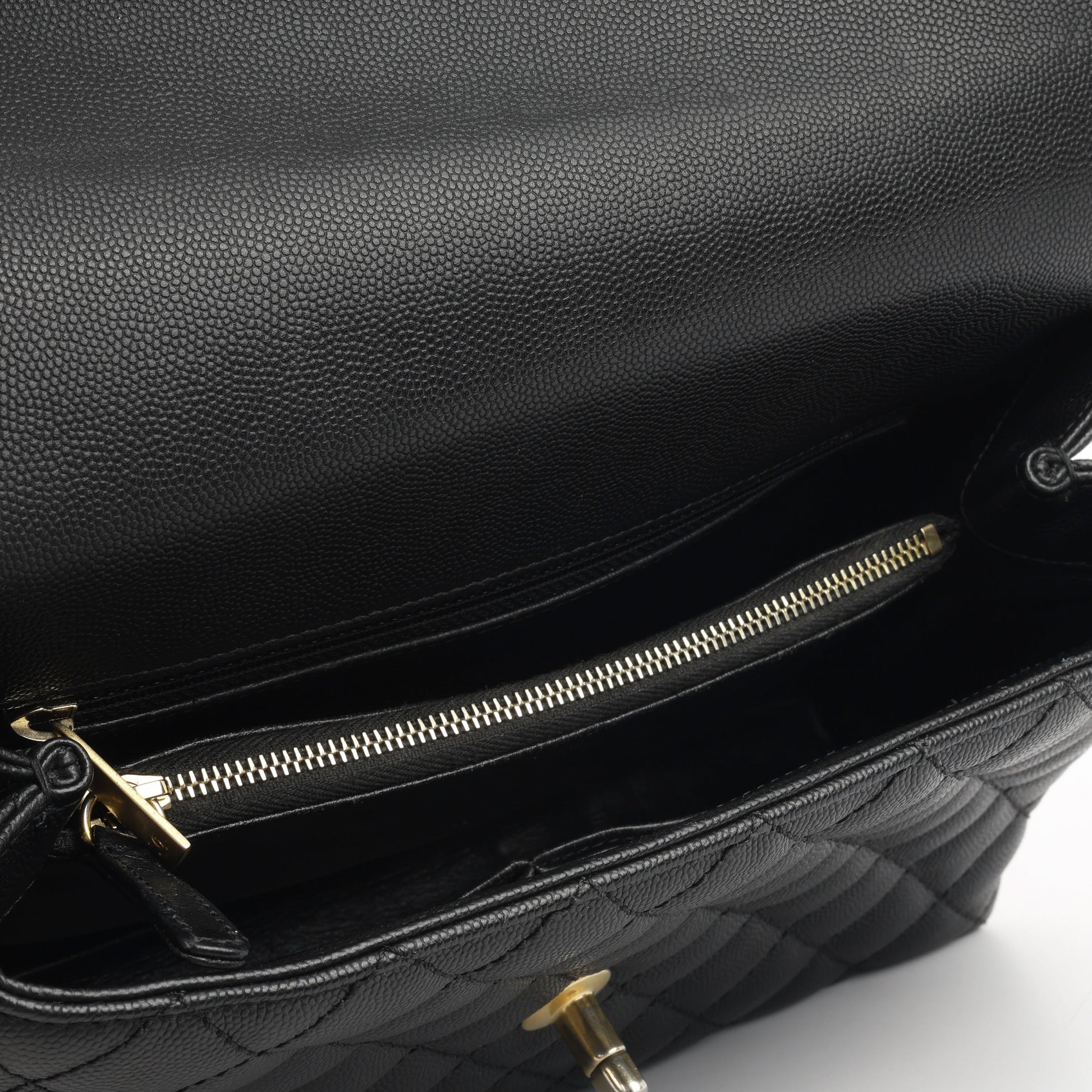 This beautiful edition of the Chanel Coco Handle is a great edition to add to your wardrobe. The shoulder bag features a sturdy rolled top handle crafted from a Lizard top handle and a detachable shoulder strap, making this magnificent handbag great for both daytime and nighttime. The flap opens up into two spacious compartments with several additional pockets; there is very little this handbag lacks.