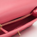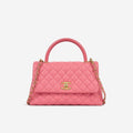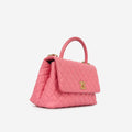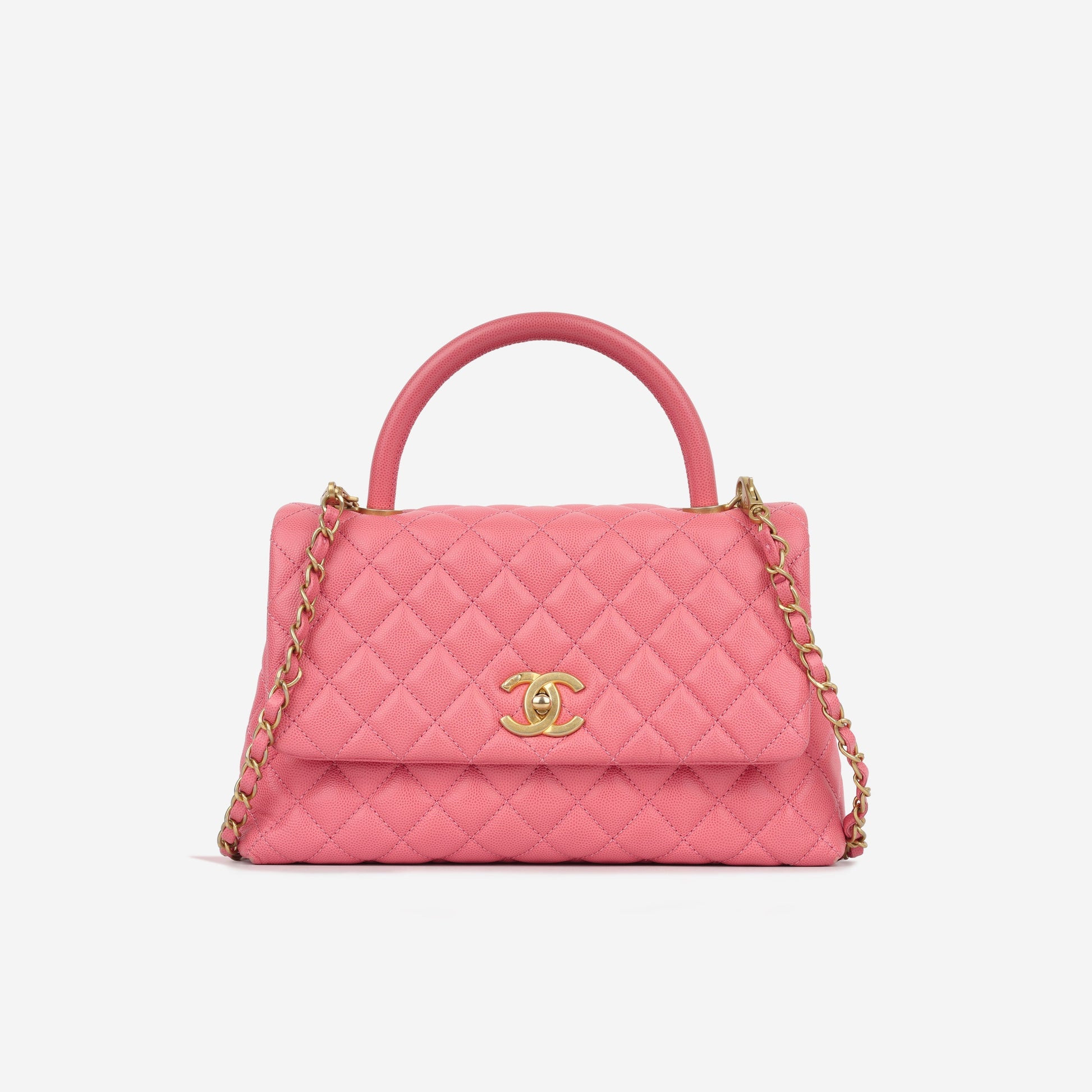 This beautiful edition of the Chanel Coco Handle is a great edition to add to your summer wardrobe. The shoulder bag features a sturdy rolled top handle and a detachable shoulder strap, making this magnificent handbag great for daytime.The flap opens up into two spacious compartments with several additional pockets; there is very little this handbag lacks.