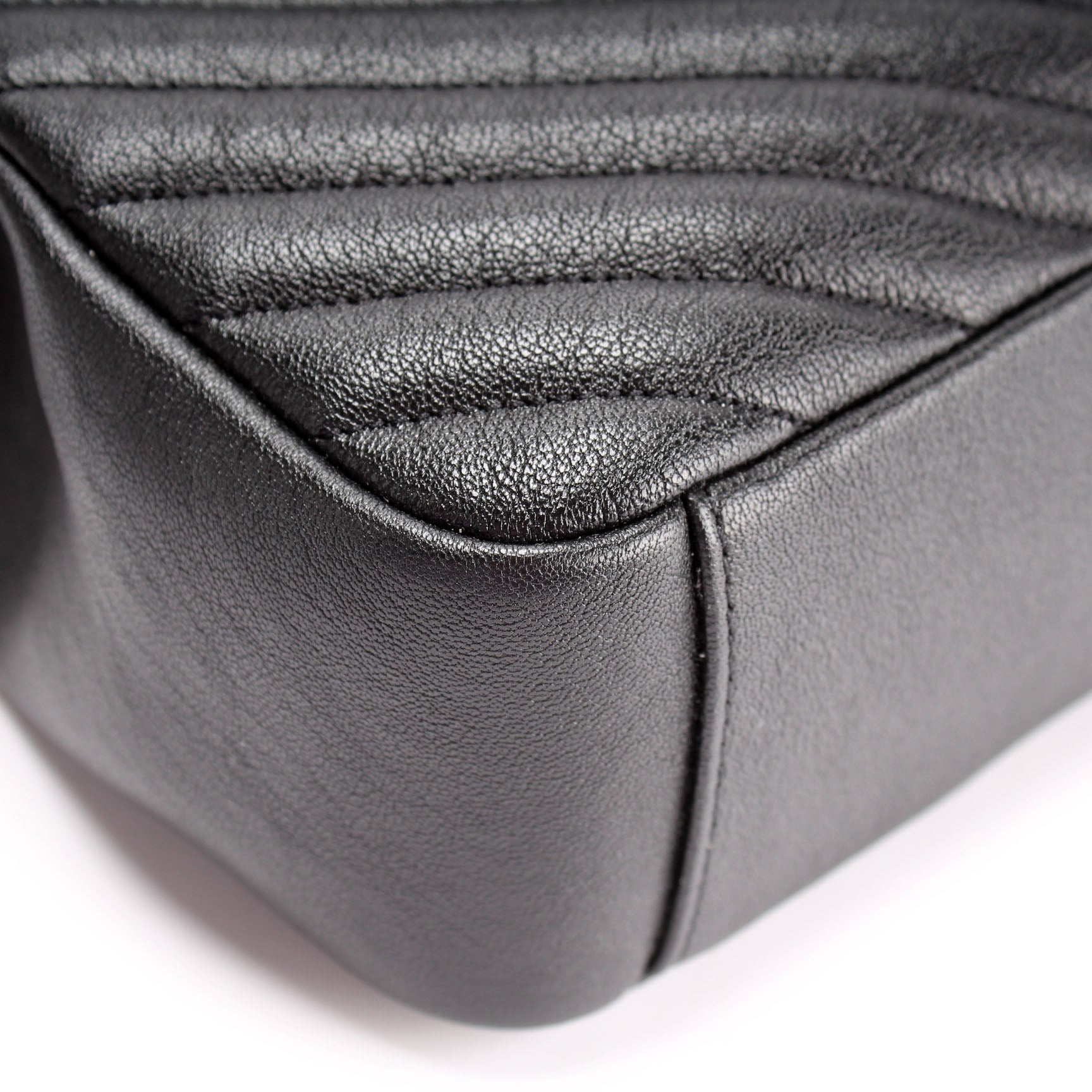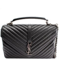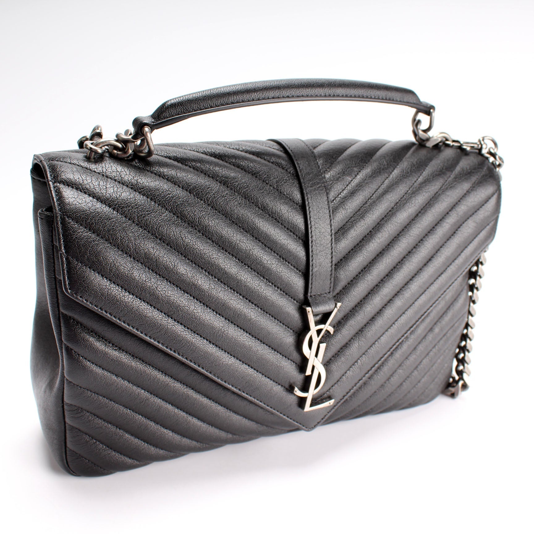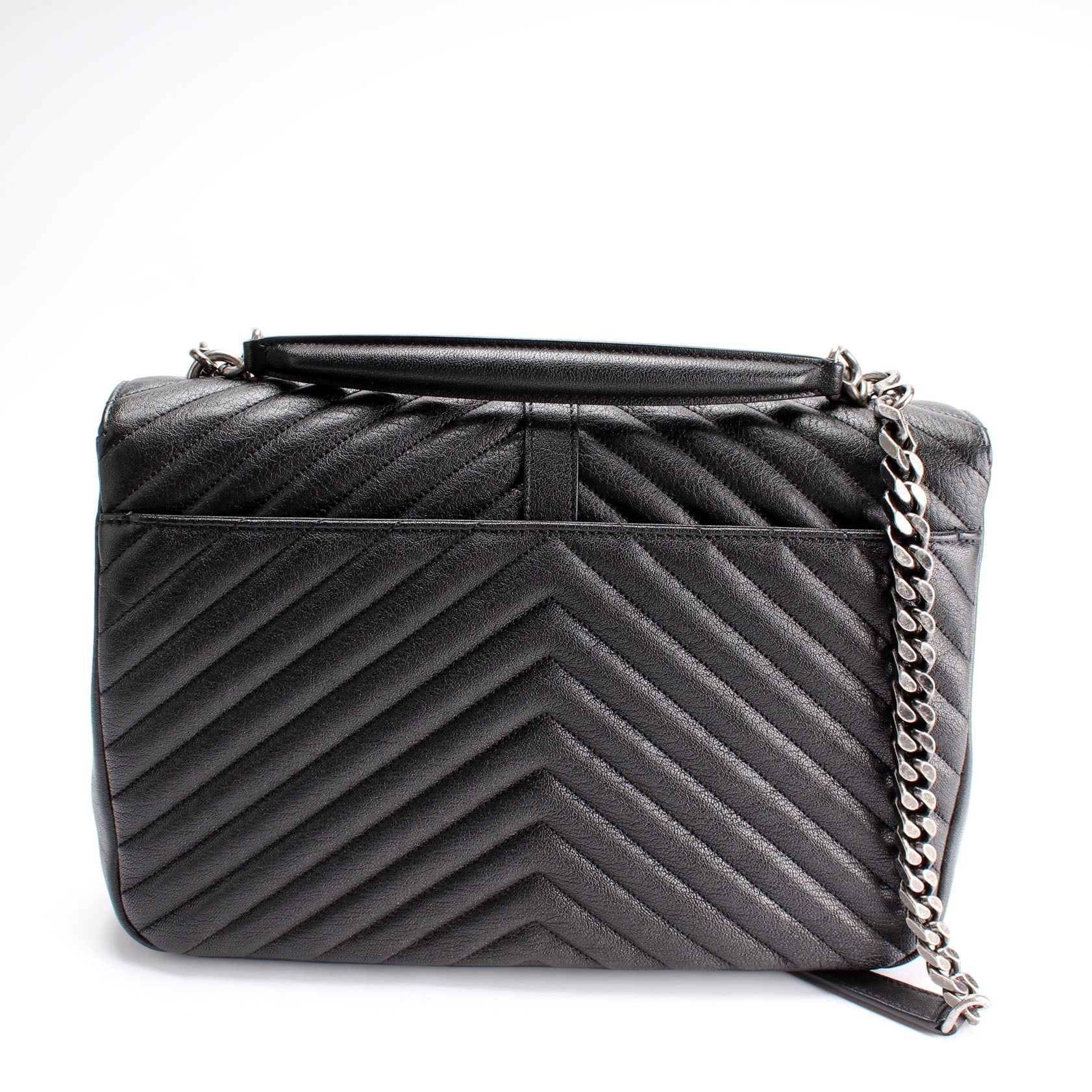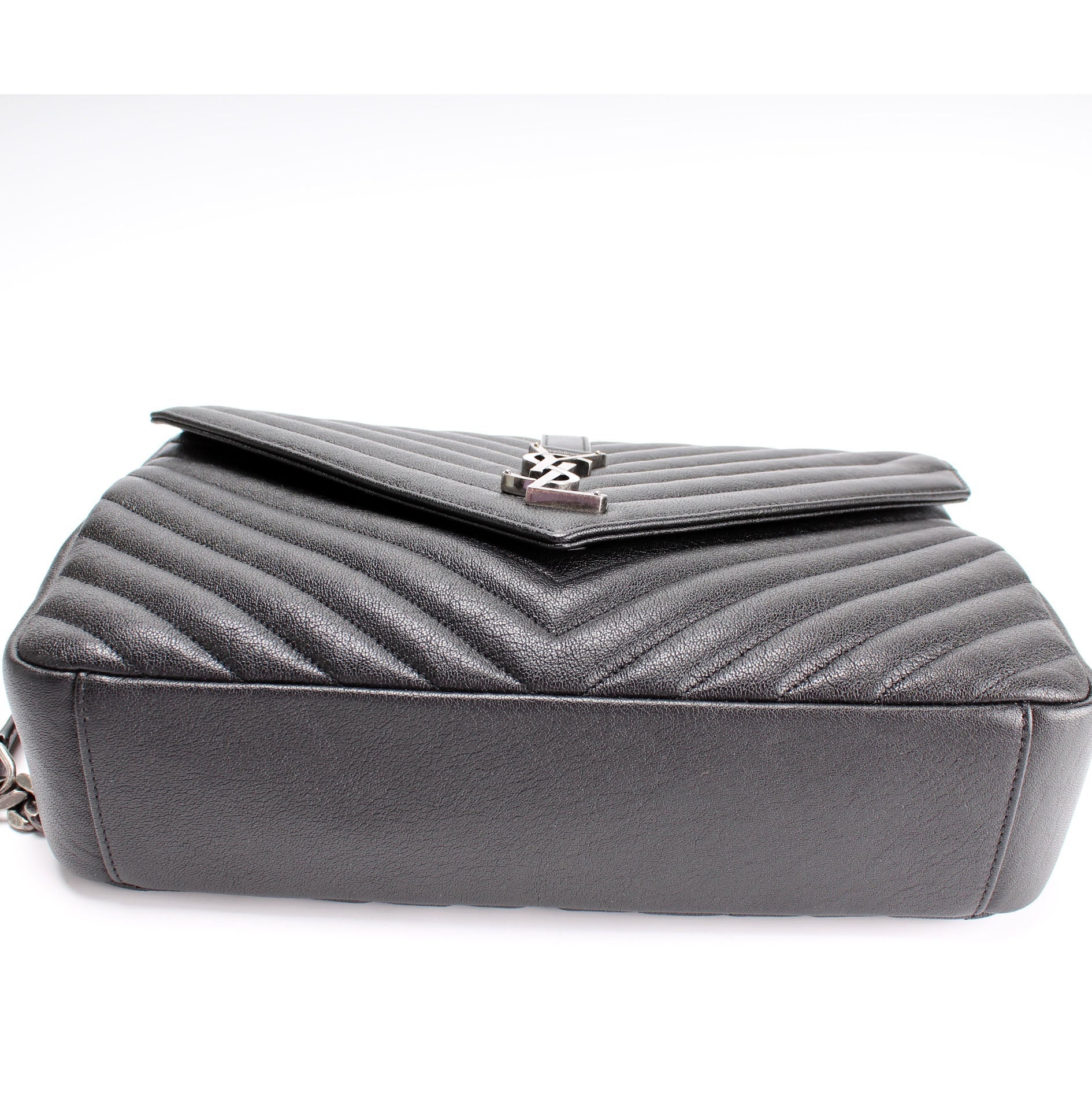 This Saint Laurent College Medium is guaranteed 100% authentic. The exterior is in the classic Saint Laurent Chevron leather.