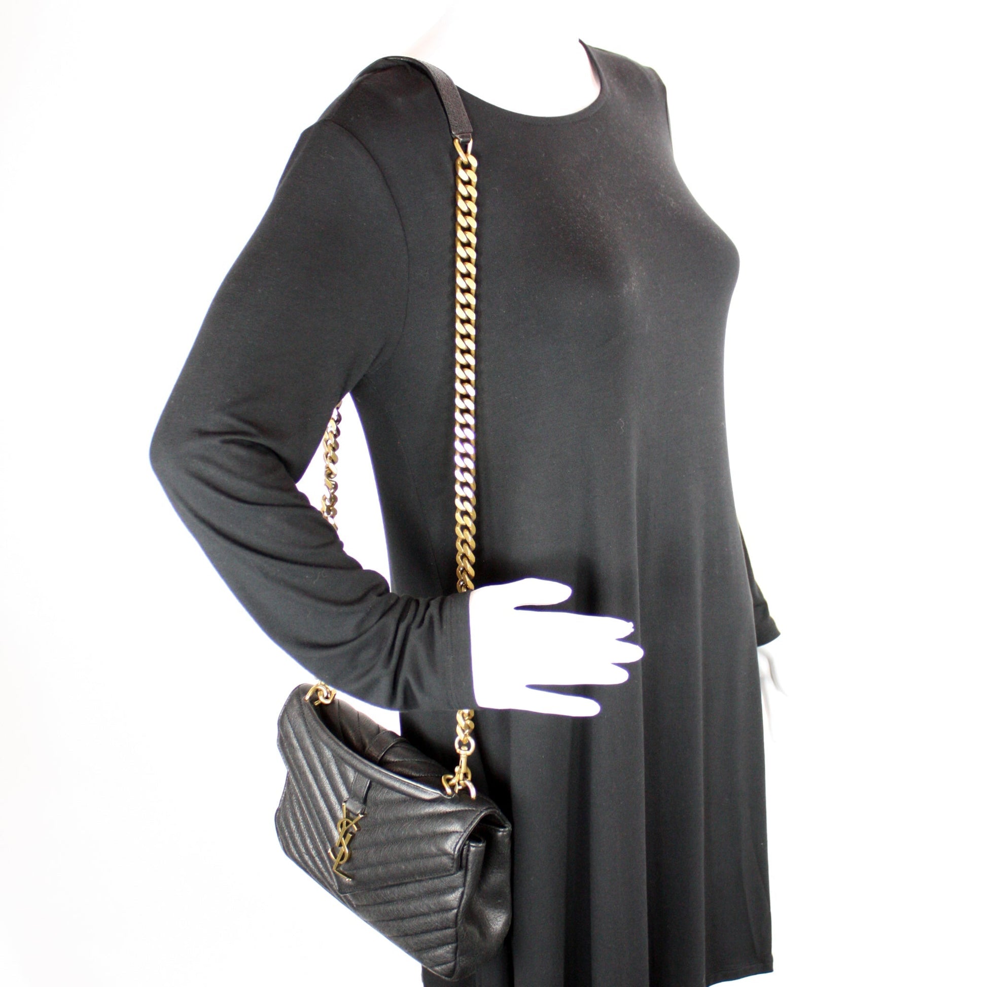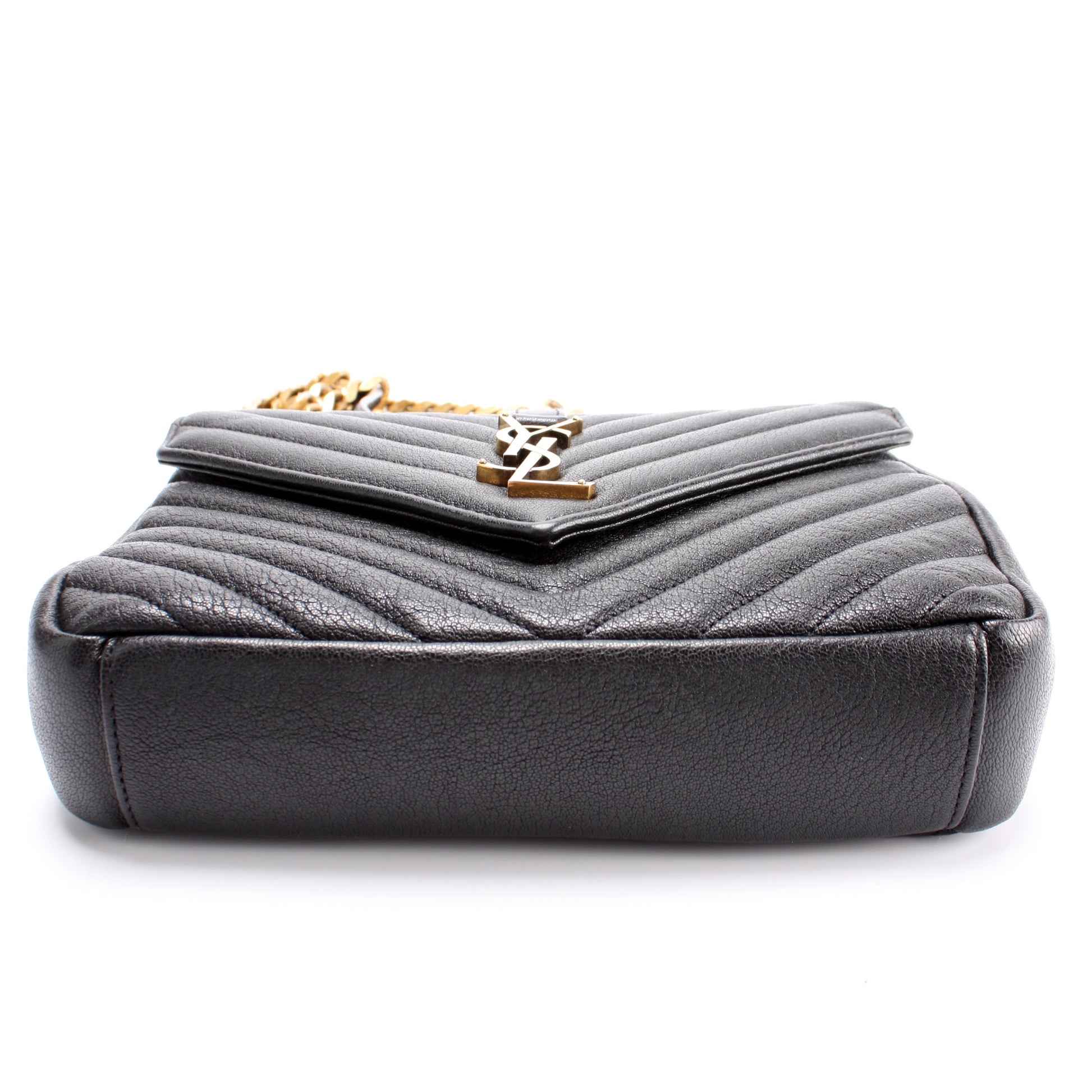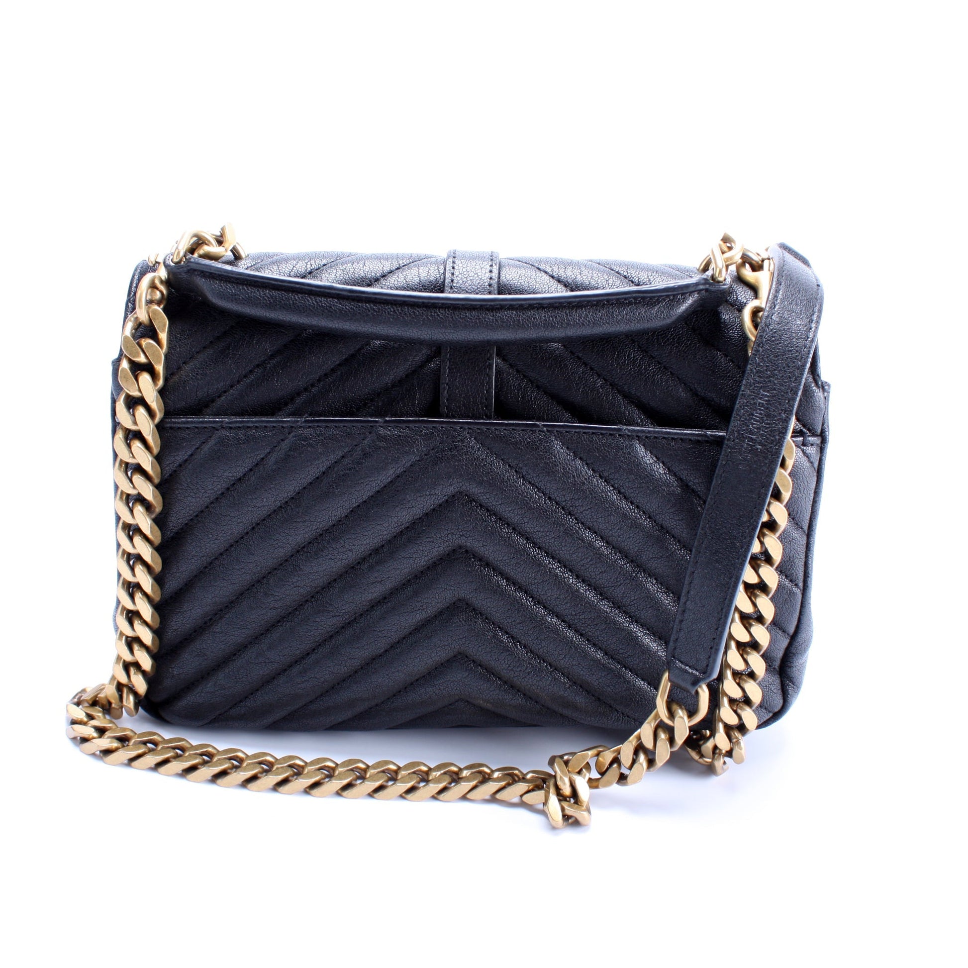 This Saint Laurent College Bag Medium is guaranteed 100% authentic. The exterior is in the classic Saint Laurent Chevron leather.