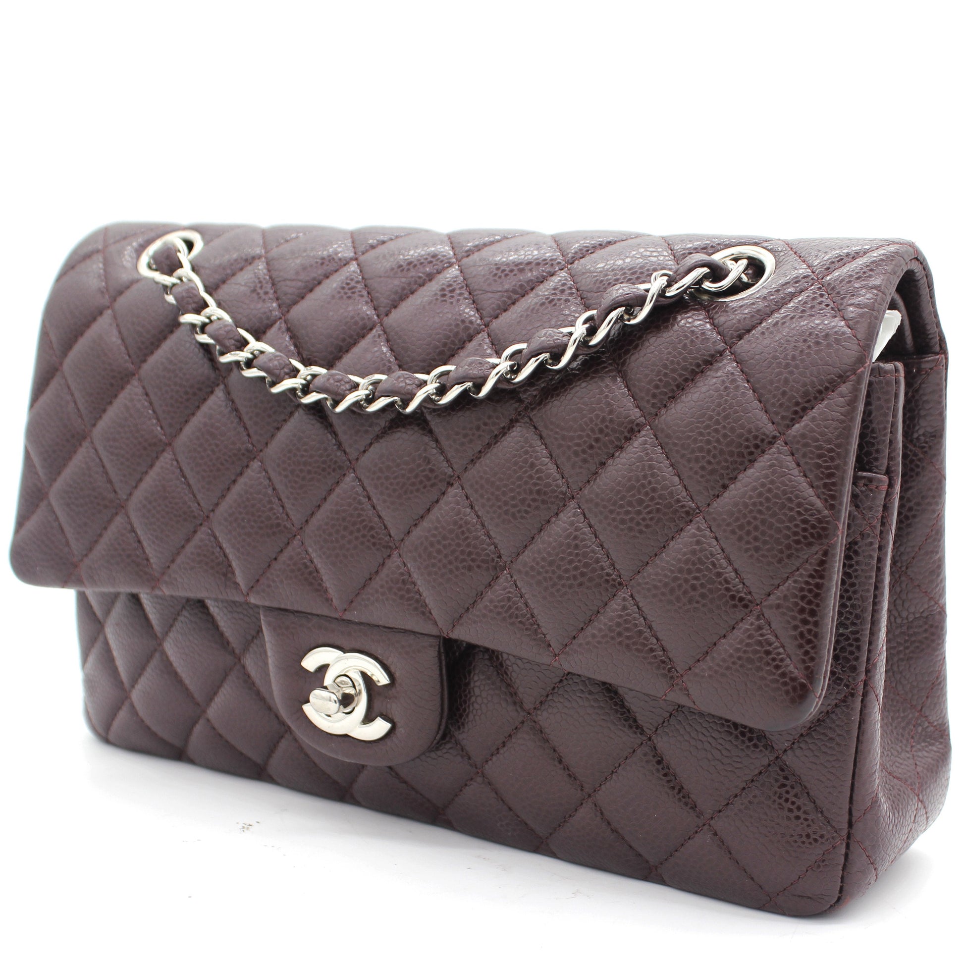 Chanel Burgundy Quilted Caviar Leather Classic Double Flap Bag