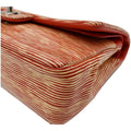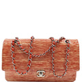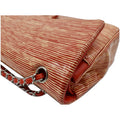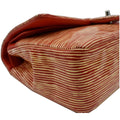 CHANEL Women Classic Medium Double Flap Striped Patent Leather Shoulder Bag White/Red