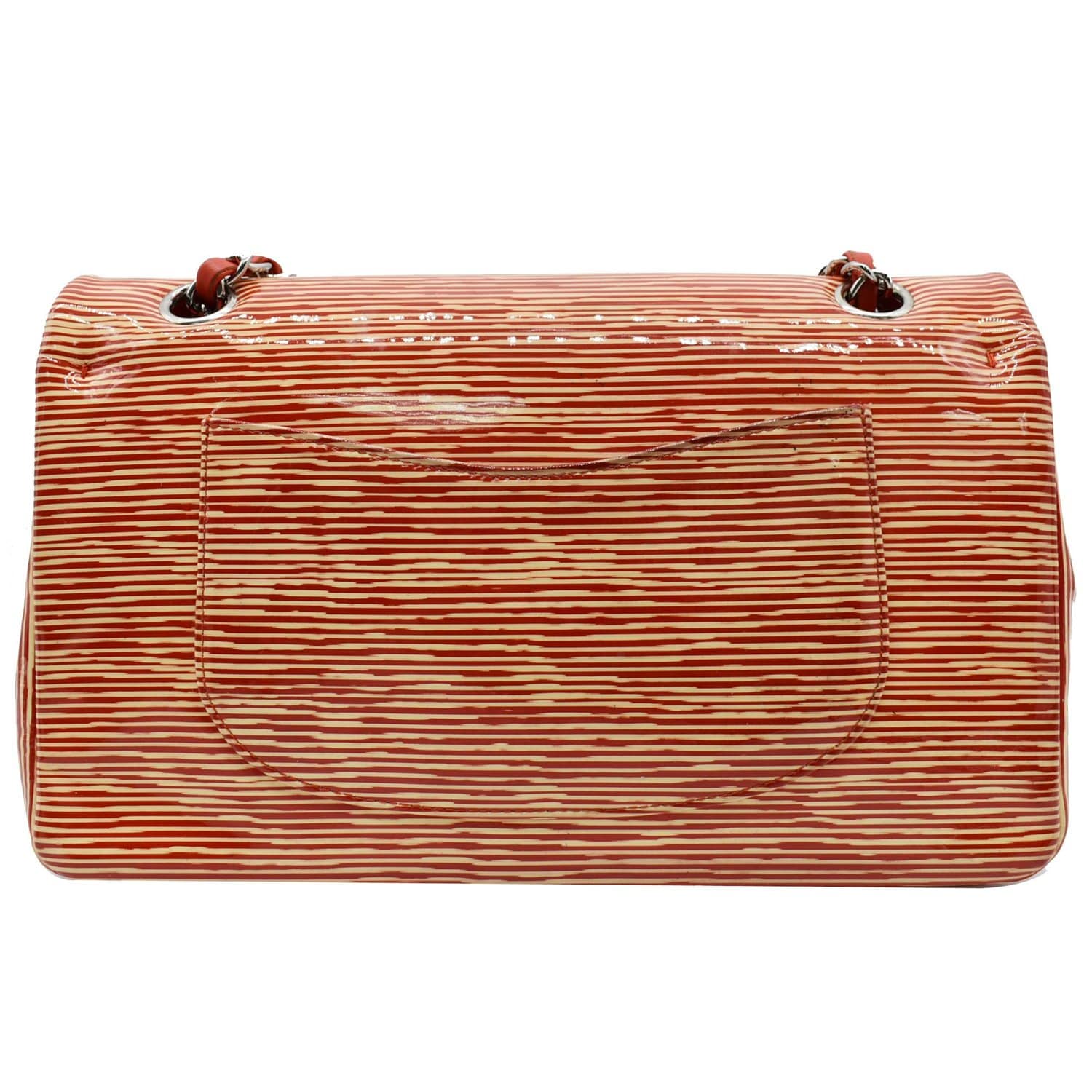 Chanel Classic Medium Double Flap Striped Patent Leather Shoulder Bag