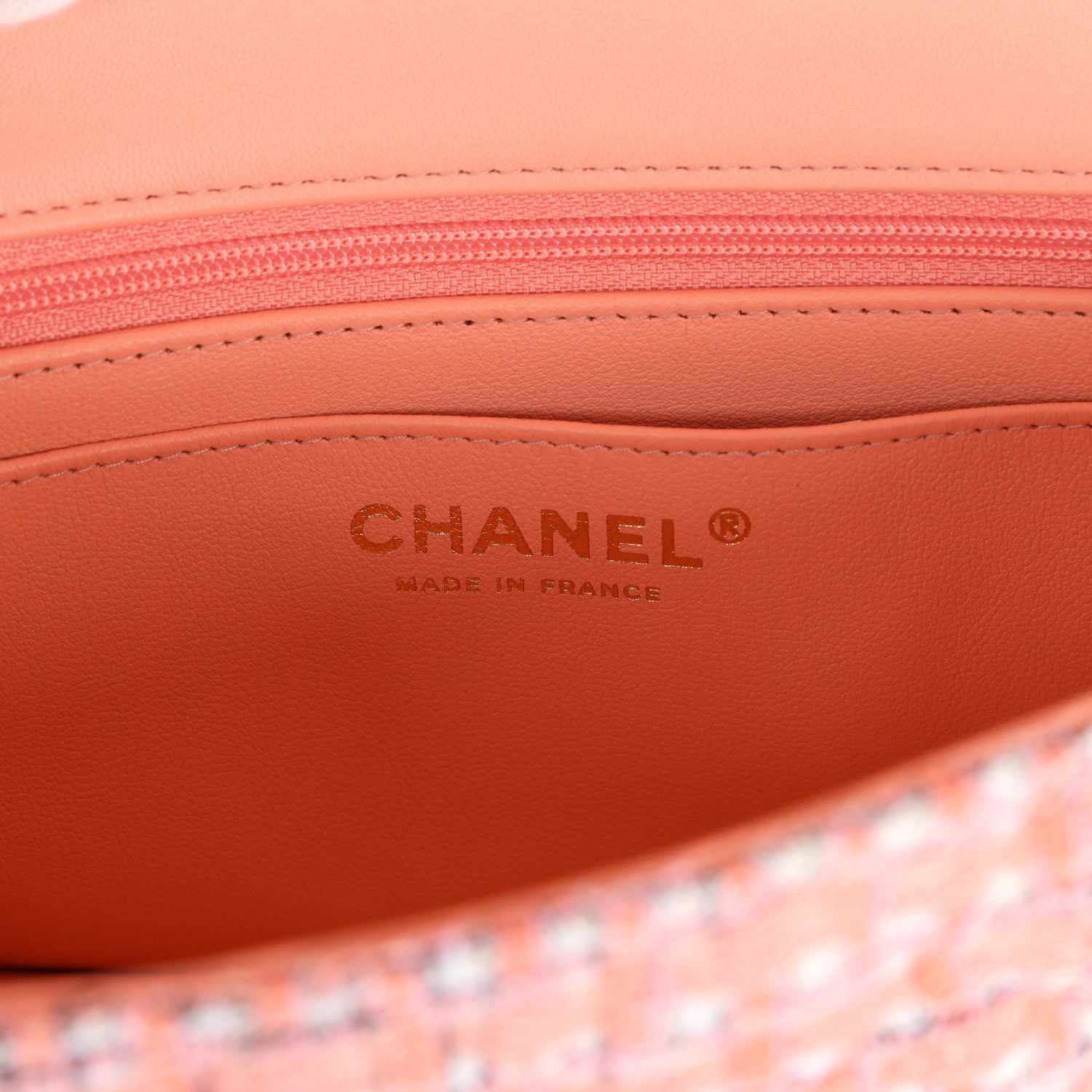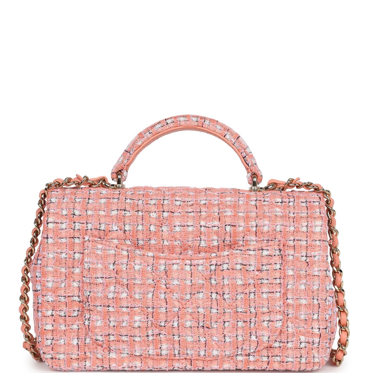 Chanel Mini Rectangular Top Handle Flap Bag Coral Tweed Light Gold Hardware