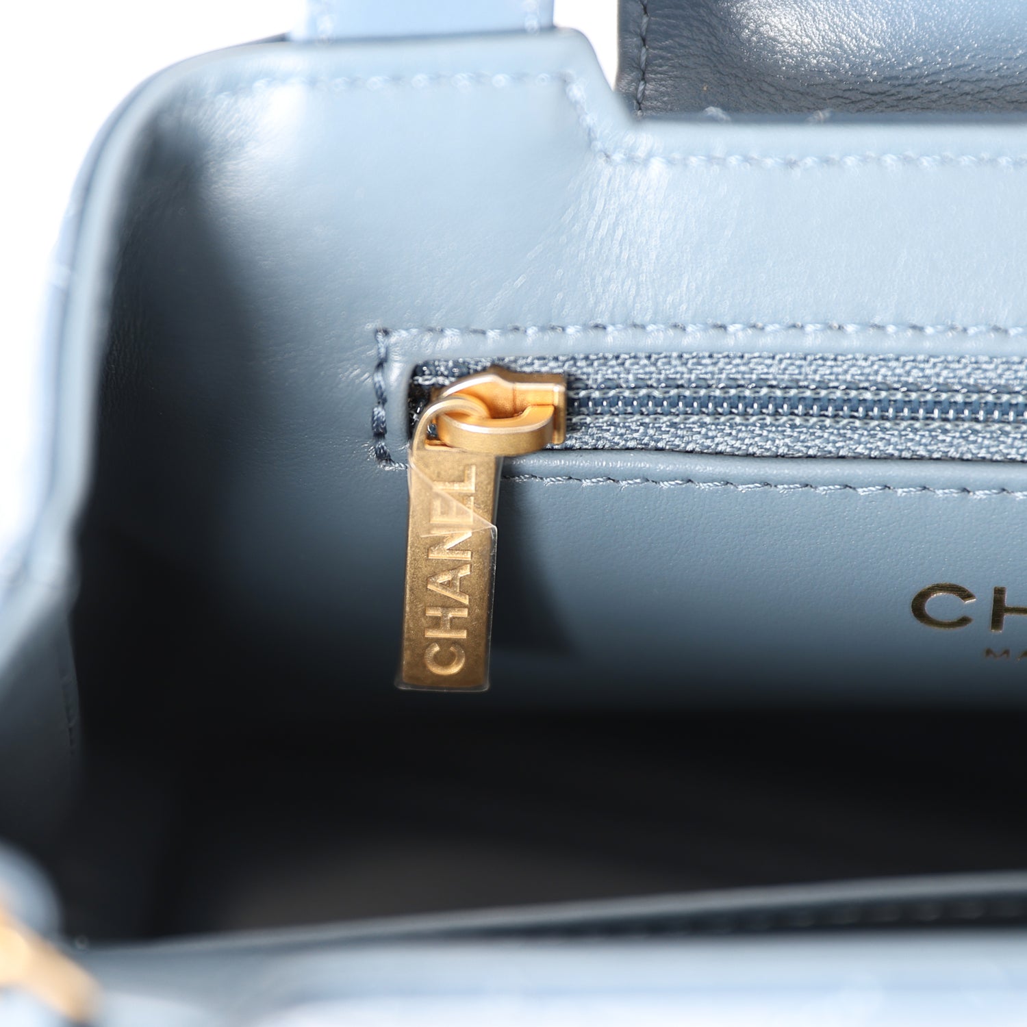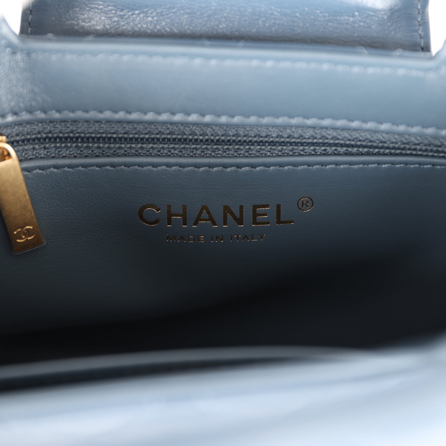 Chanel Small Kelly Shopper Blue Shiny Aged Calfskin Brushed Gold Hardware