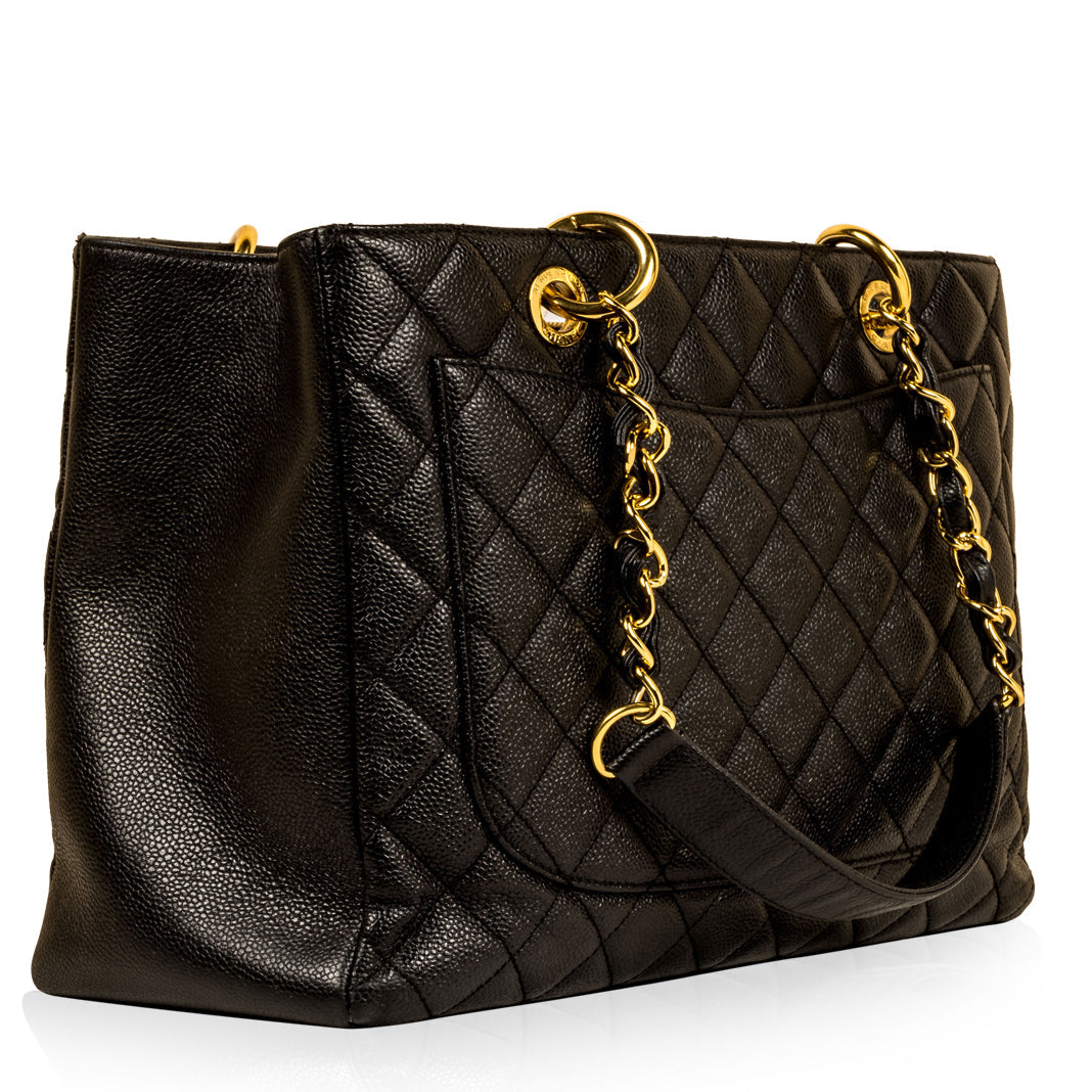Chanel presents one of its most exclusive and coveted handbags; the Grand Shopping Tote. The bag is presented in durable caviar leather and features the brand’s iconic quilted pattern alongside a large CC stitched logo. Its spacious interior features two open compartments separated by a middle zip pocket. A timeless piece that will never go out of style, the GST remains one of the most in-demand Chanel bags - despite unfortunately being discontinued in 2015. A classic handbag from the brand, the GST is that bag you'll use for any and every occasion. Going to work? Running errands? Dinner party with friends? Travelling? The GST is the ideal companion to have by your side. Sleek, stylish and sophisticated, the GST is a bag you'll have forever and one that you'll never fall out of love with. A well-worthy investment and a true must-have in any luxury handbag collection.