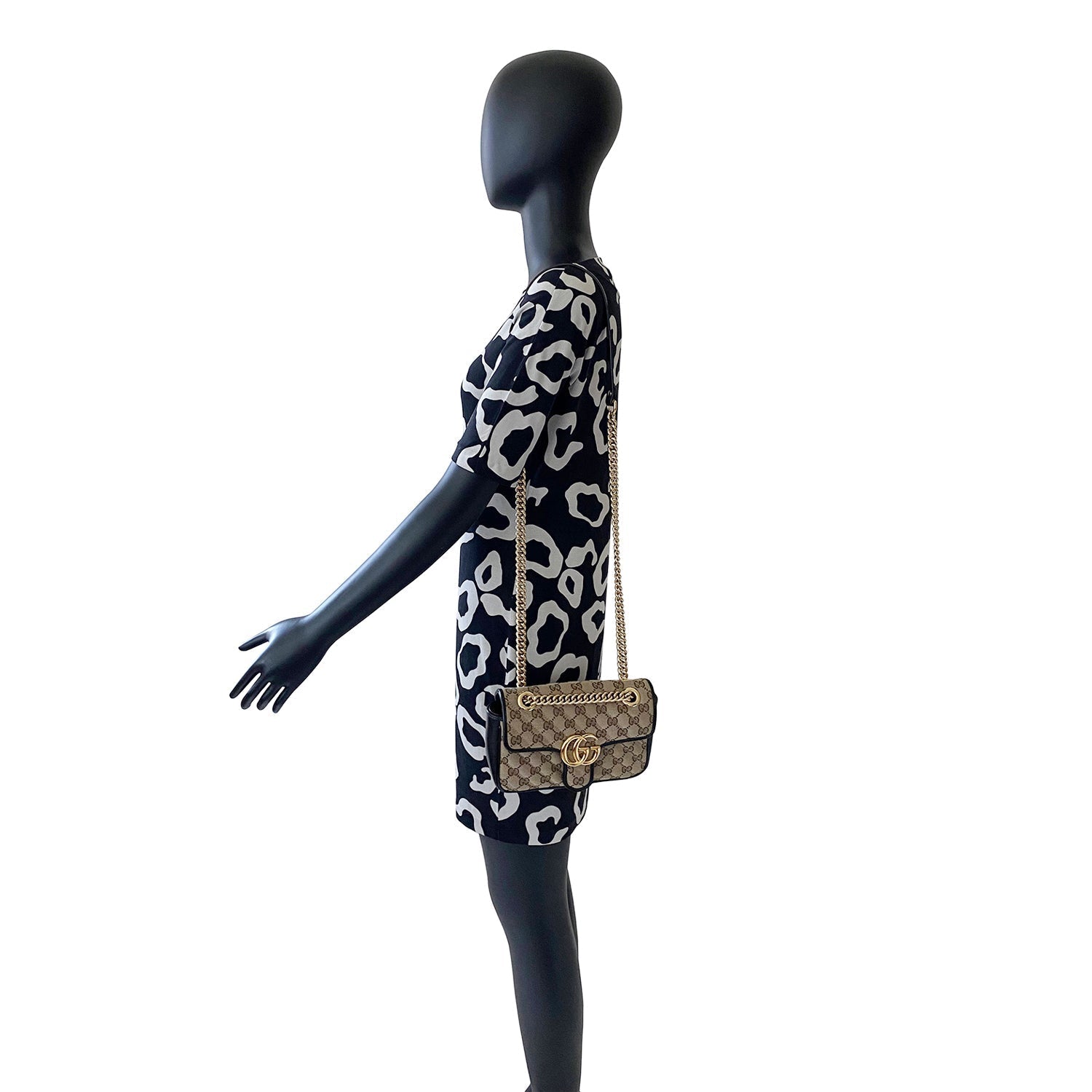 Description: Pre-Owned Gucci Mini Marmont GG Canvas Bag