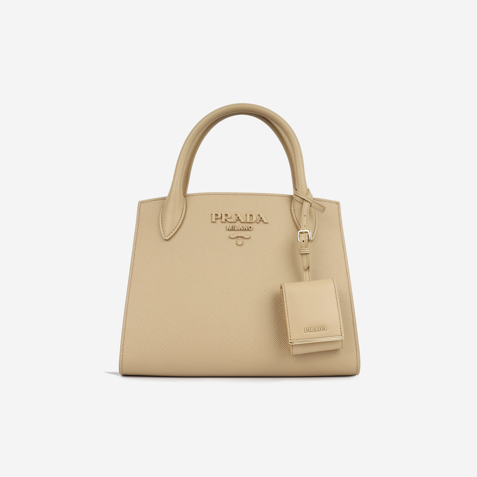 Introducing the Small 'Prada Monochrome' Handbag, a luxurious accessory crafted from high-quality Saffiano leather. With its sleek design and practical features, this Prada handbag is the perfect companion for any occasion, whether for a day at the office or an evening out. Elevate your style with this timeless and iconic accessory from Prada.