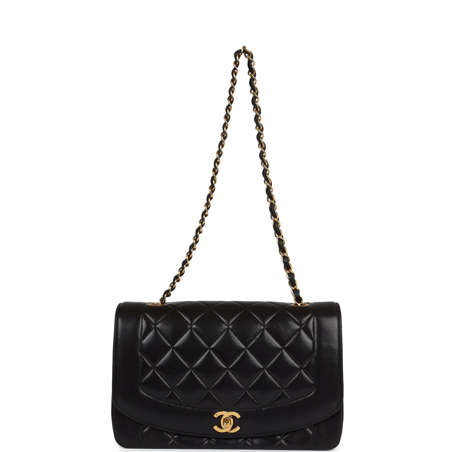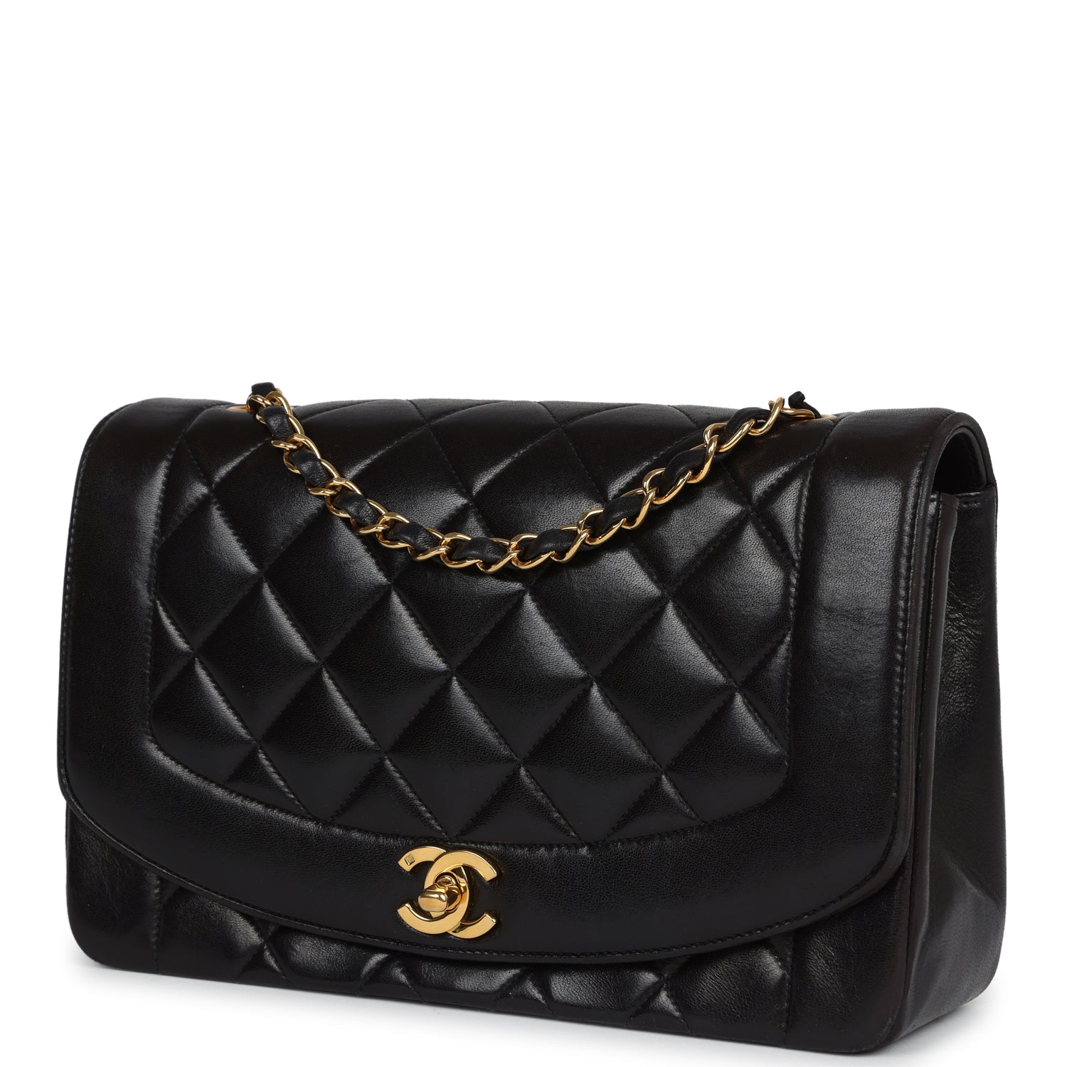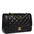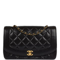 Vintage Chanel Medium Diana Flap Bag Black Lambskin Gold Hardware