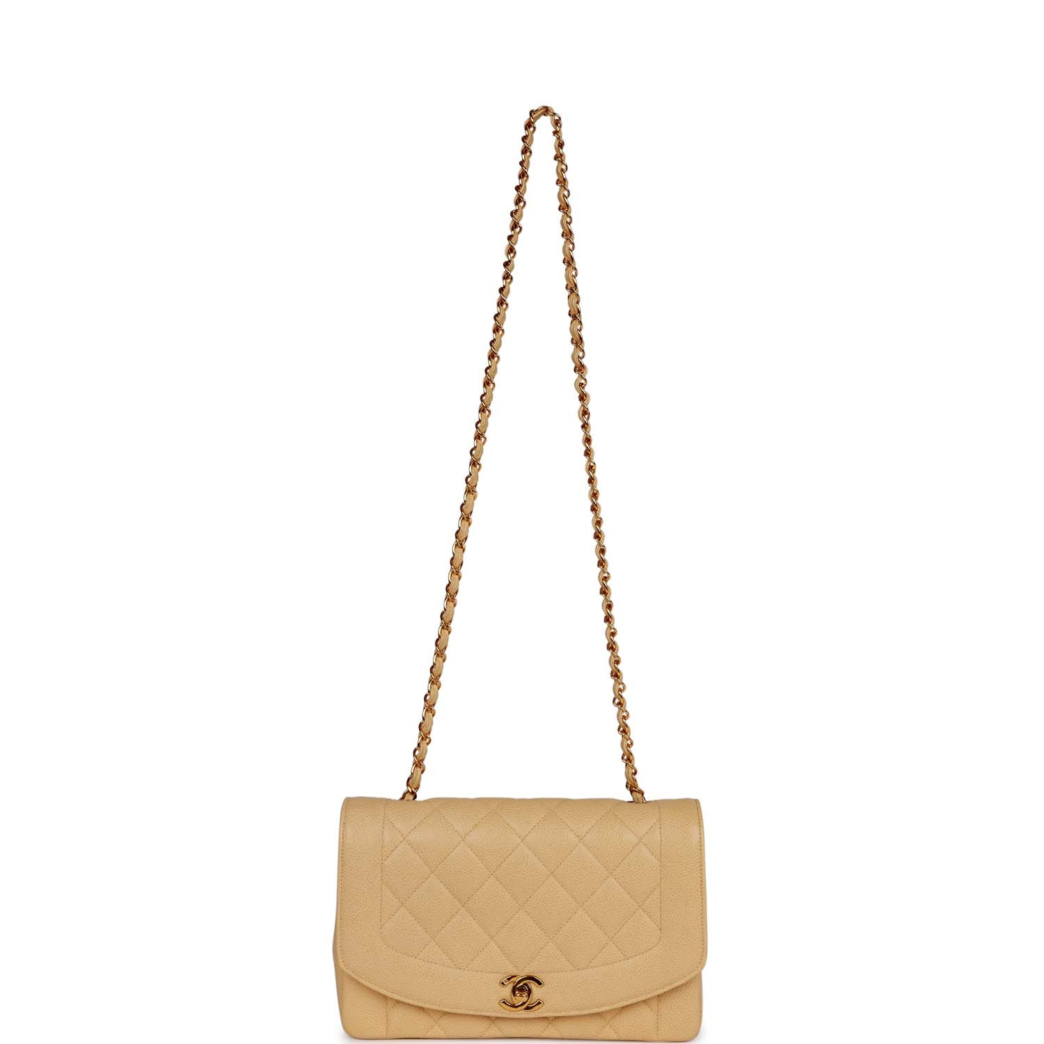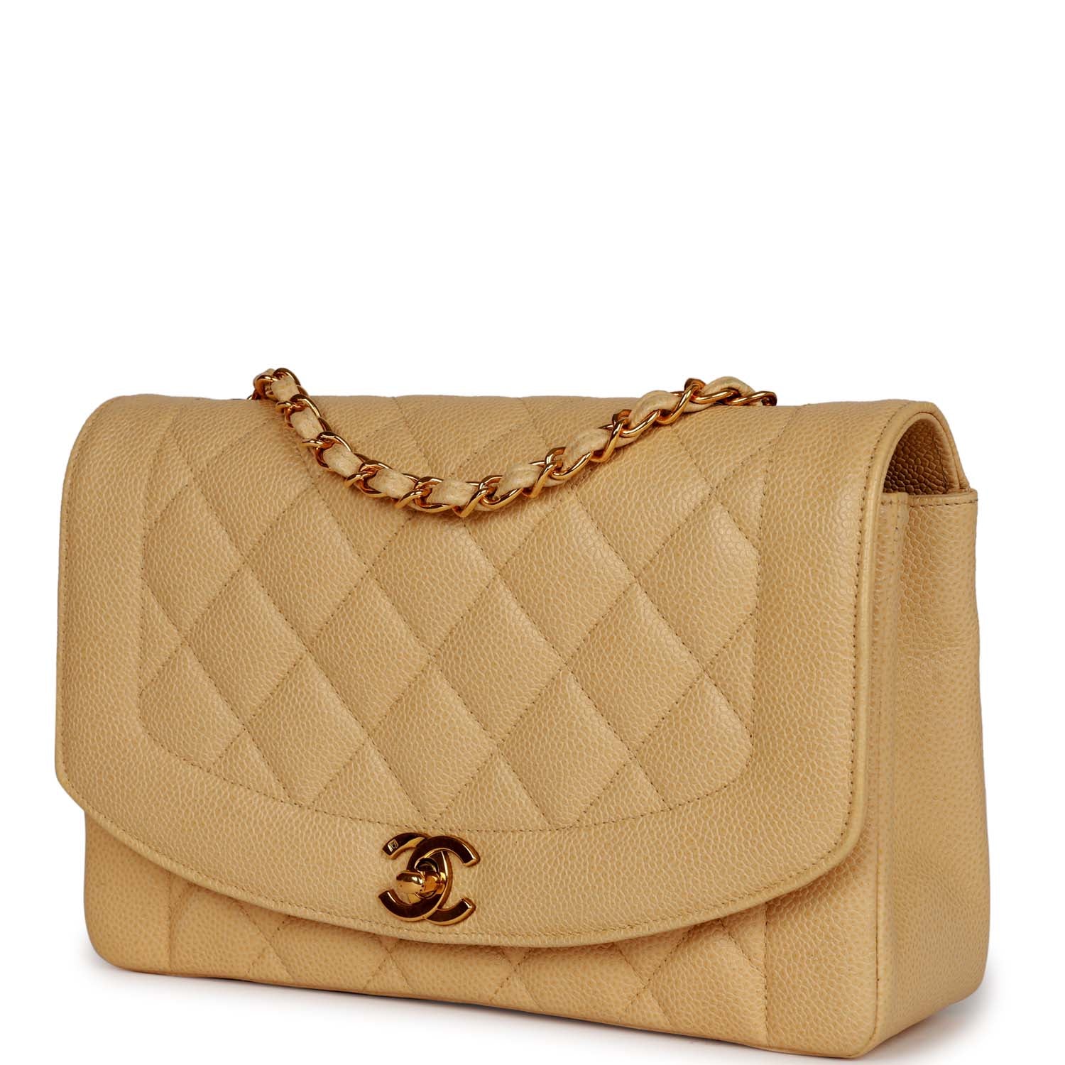 Vintage Chanel Medium Diana Flap Bag Beige Caviar Gold Hardware