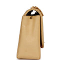 Vintage Chanel Medium Diana flap bag is in beige caviar leather with gold hardware featuring a front flap with classic gold plated CC turnlock closure and an interwoven gold chain link shoulder/crossbody strap.