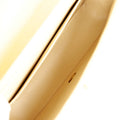 The interior is lined in beige leather and includes one zip pocket and one slip pocket on the back wall.