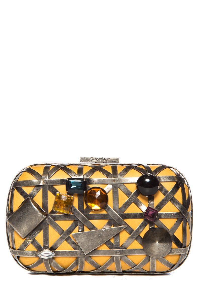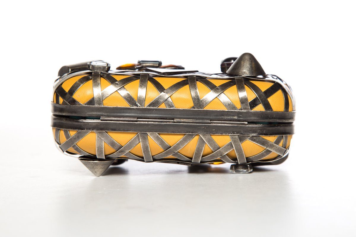 Corto Moltedo Yellow Leather& Crystal Clutch