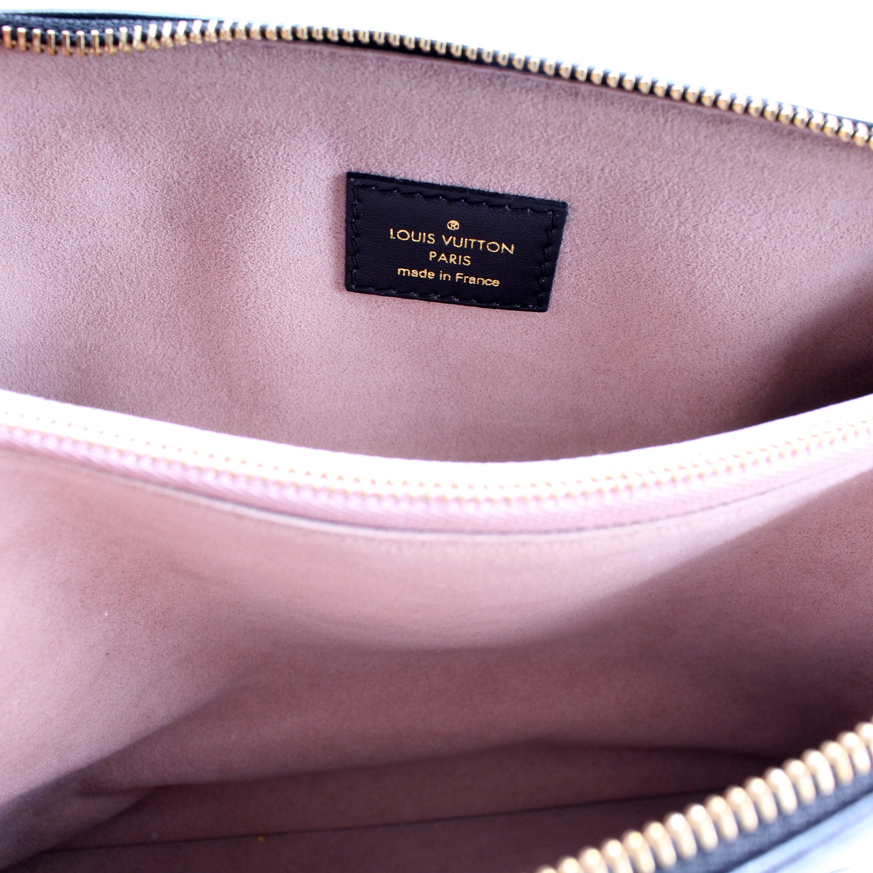 Interior: The interior is free of stains or tears. The interior features one zip closure pocket.