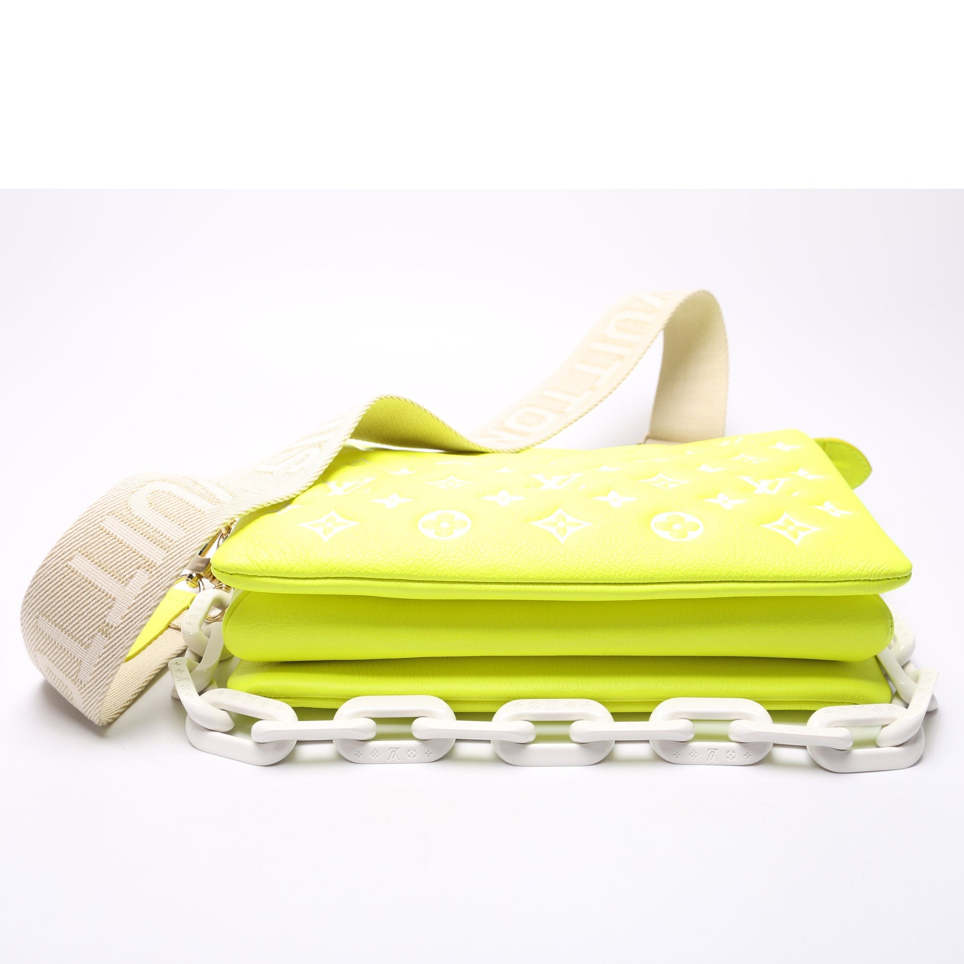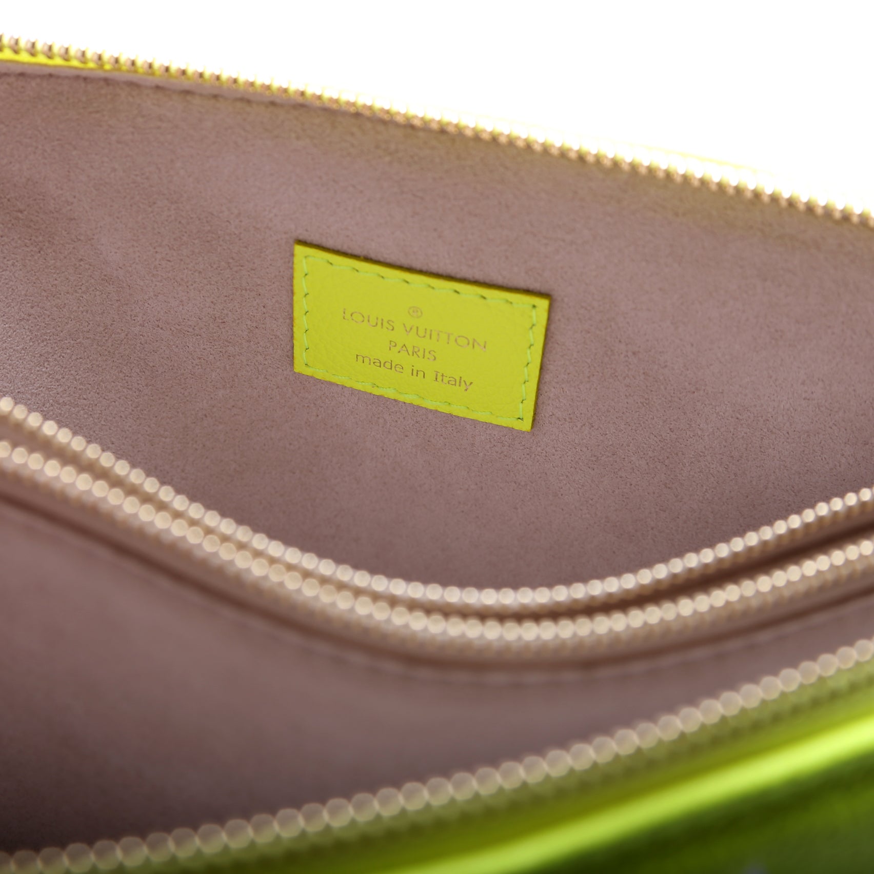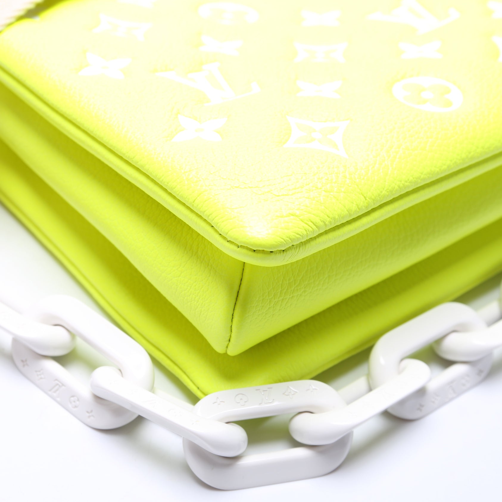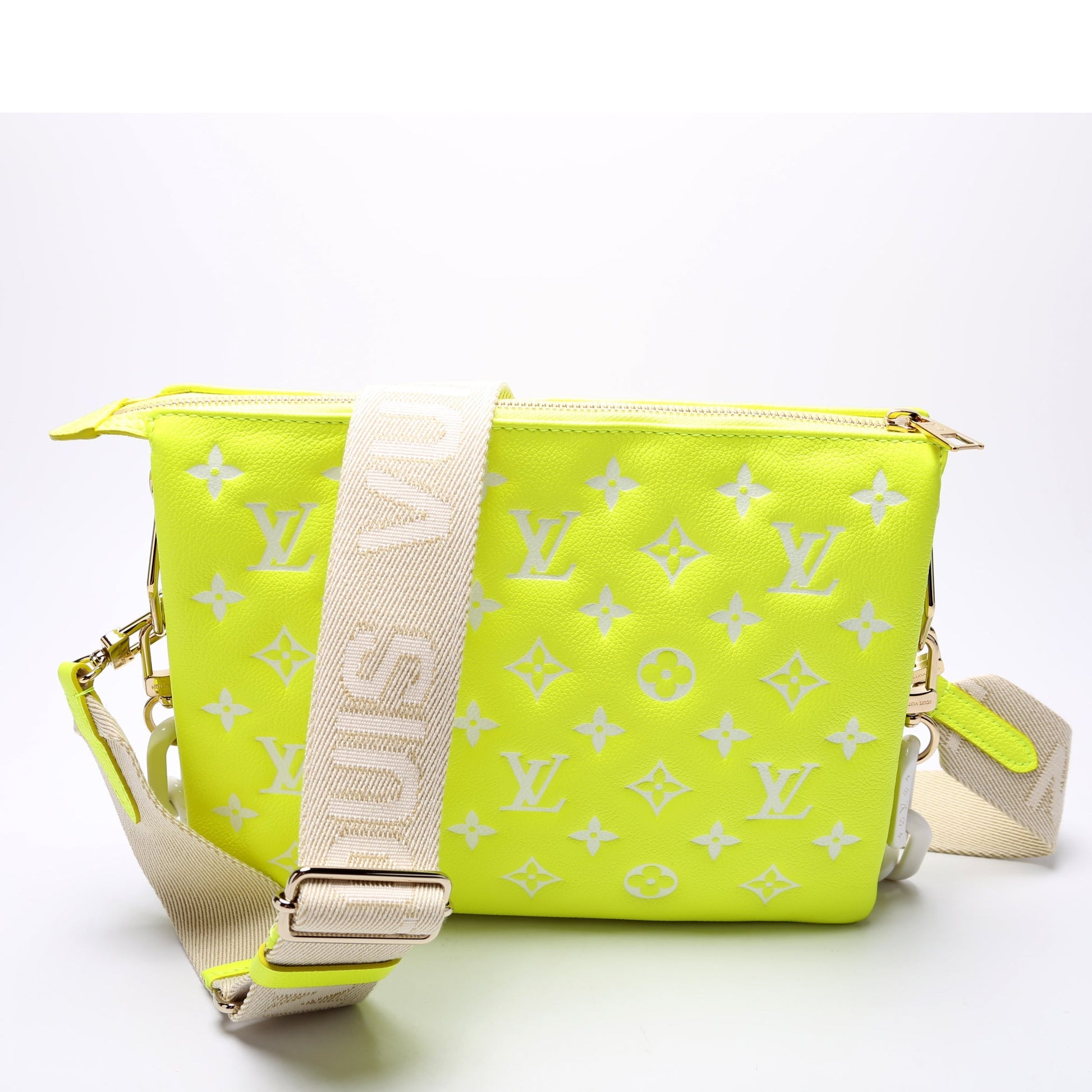 This Louis Vuitton Coussin PM LV Match Calfskin Monogramis eye catching bag.