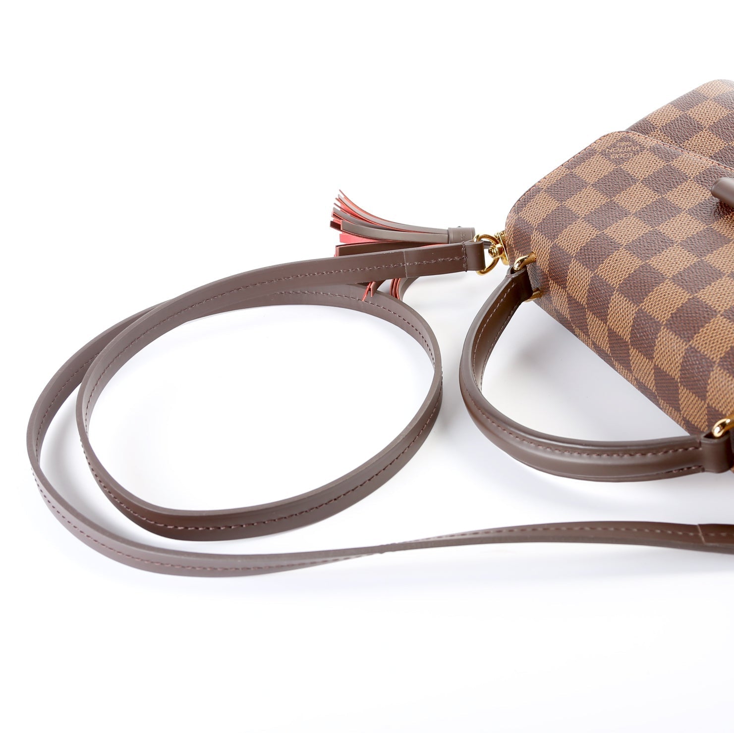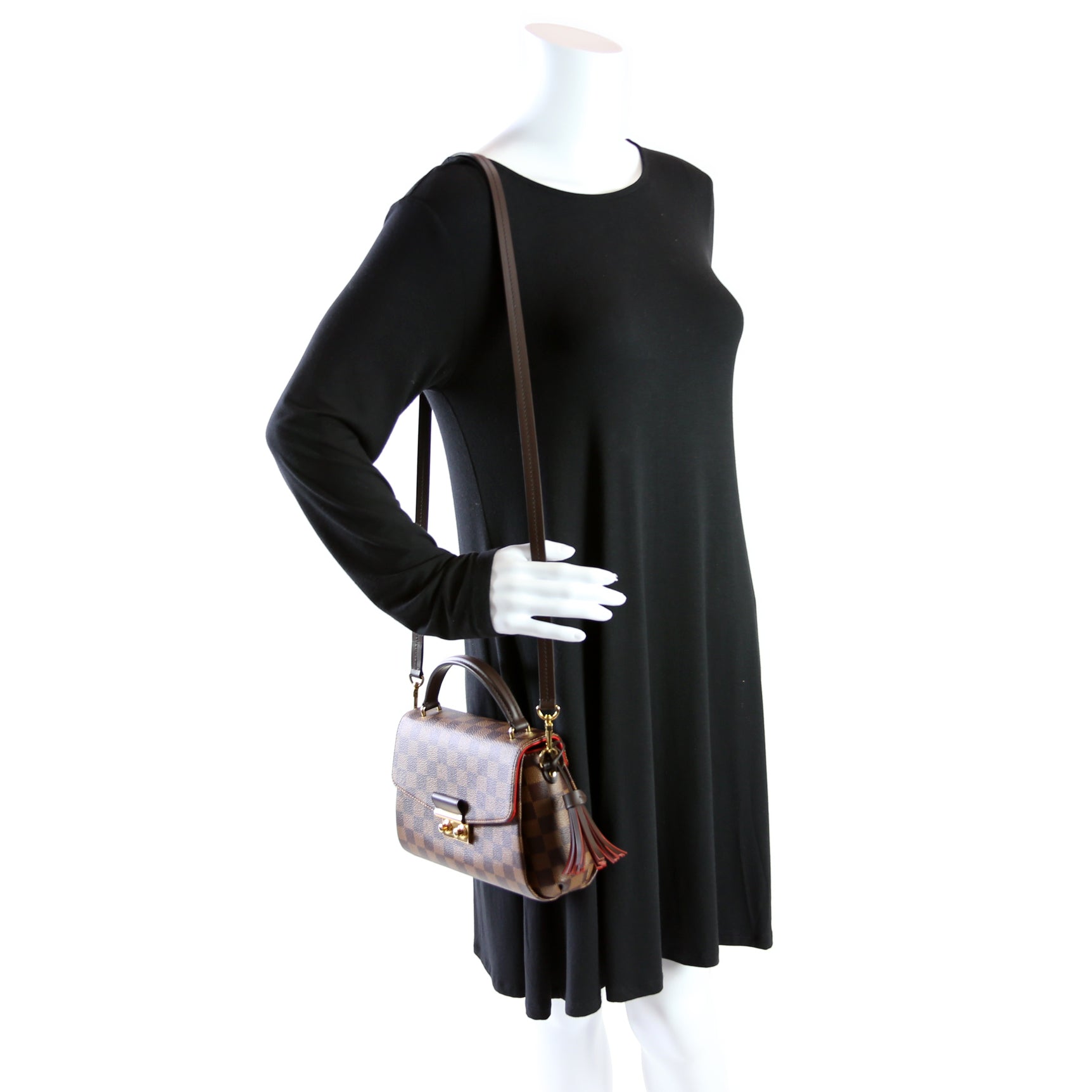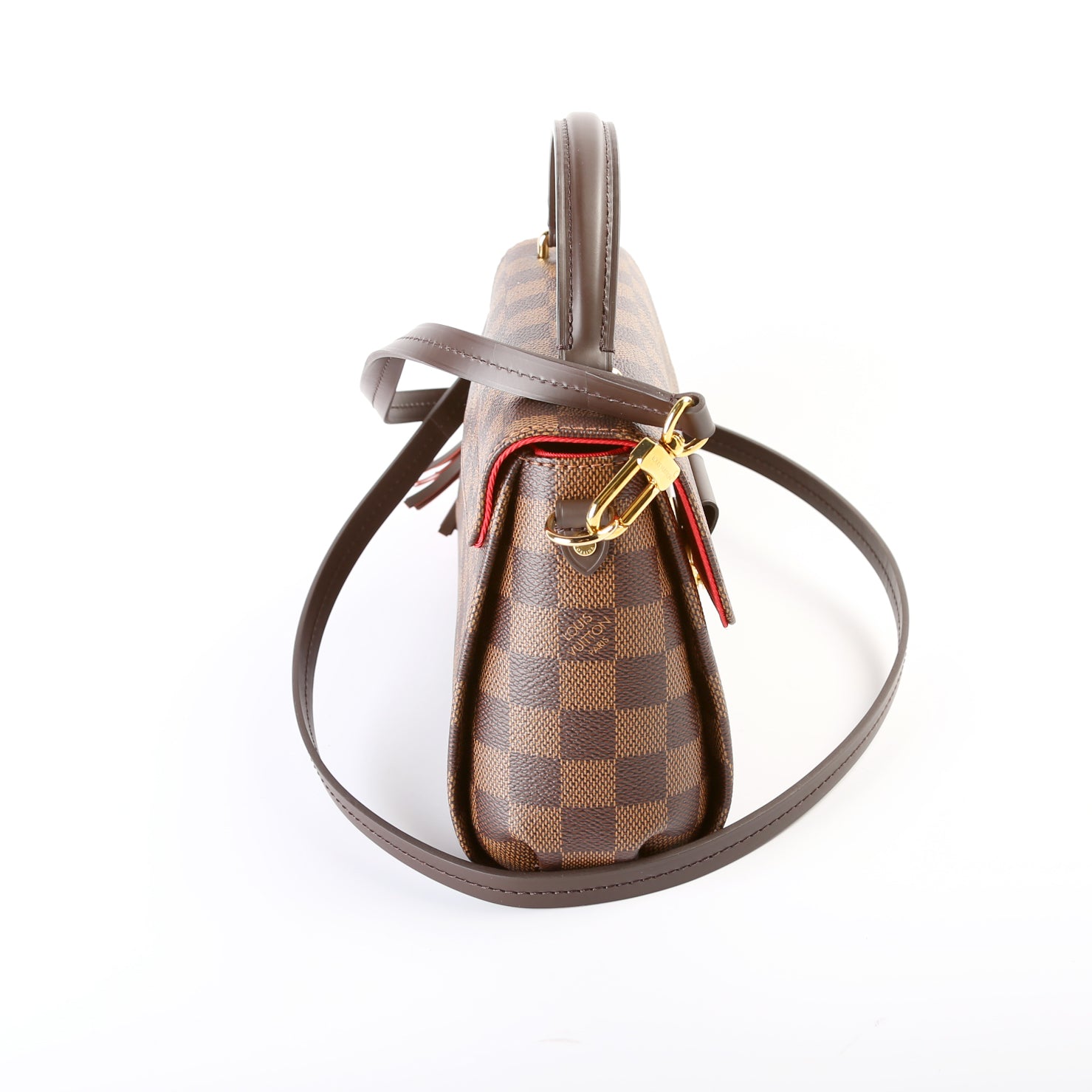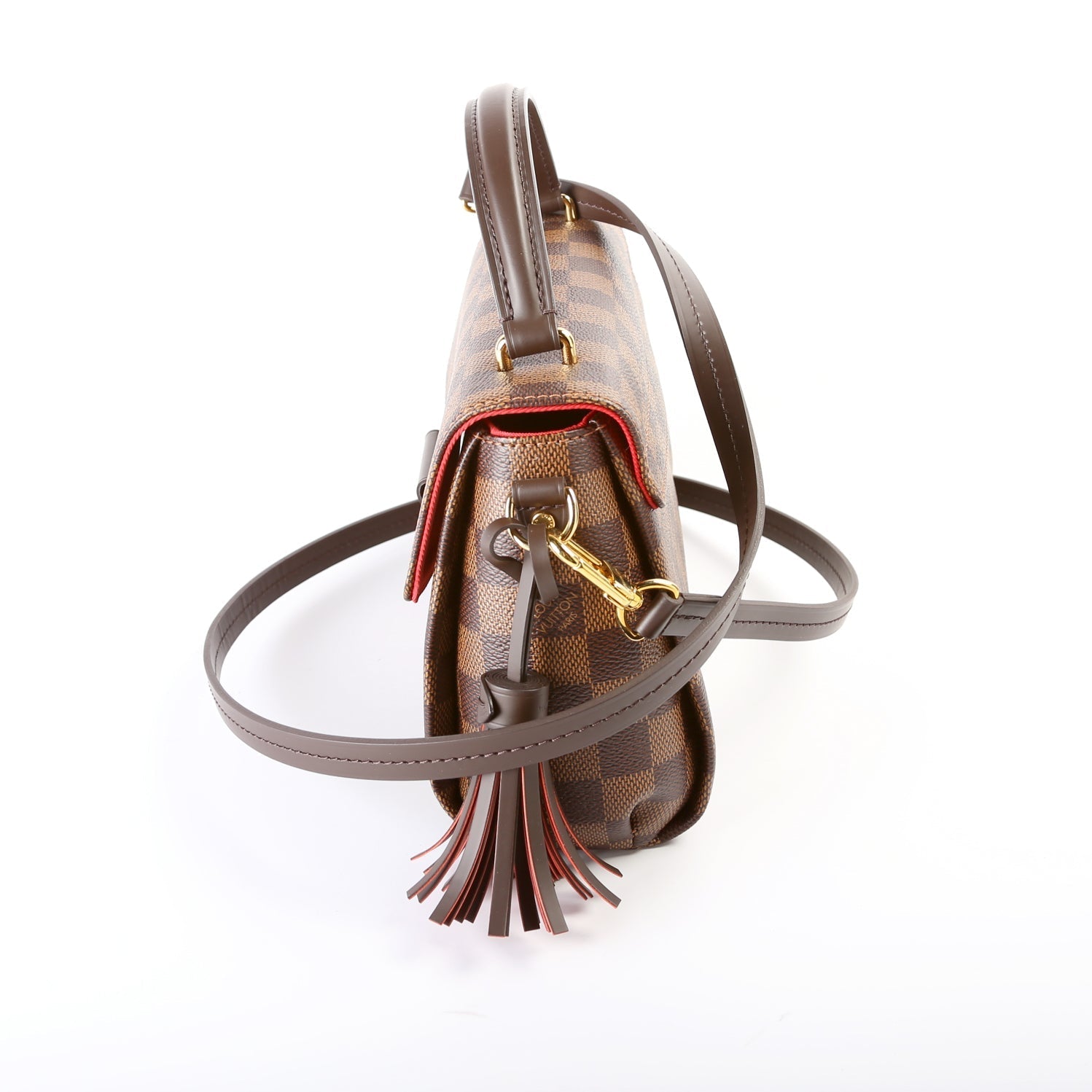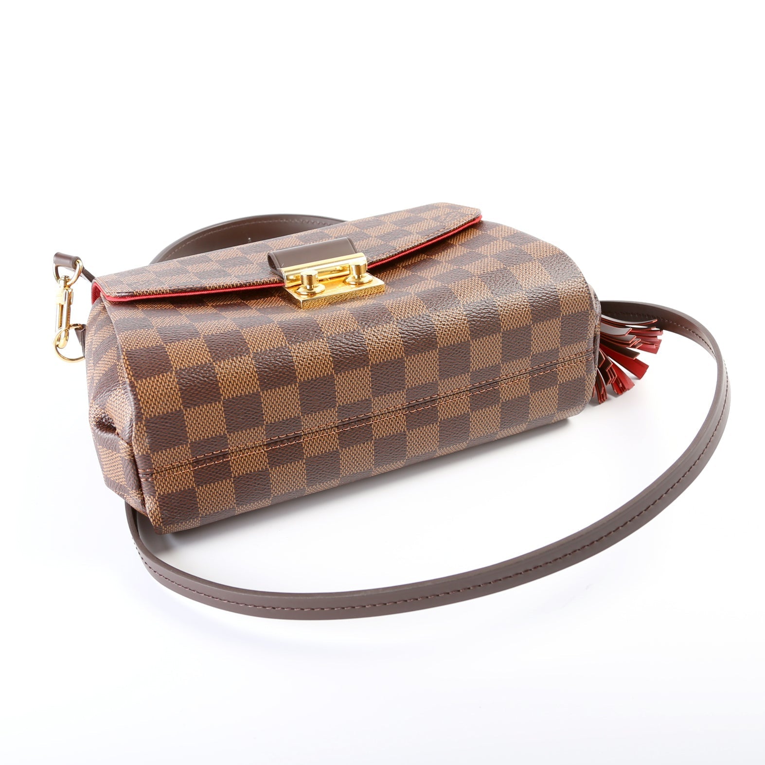 This Louis Vuitton Croisetteis eye catching bag. The exterior is in the classic Louis Vuitton Damier Ebene coated canvas.