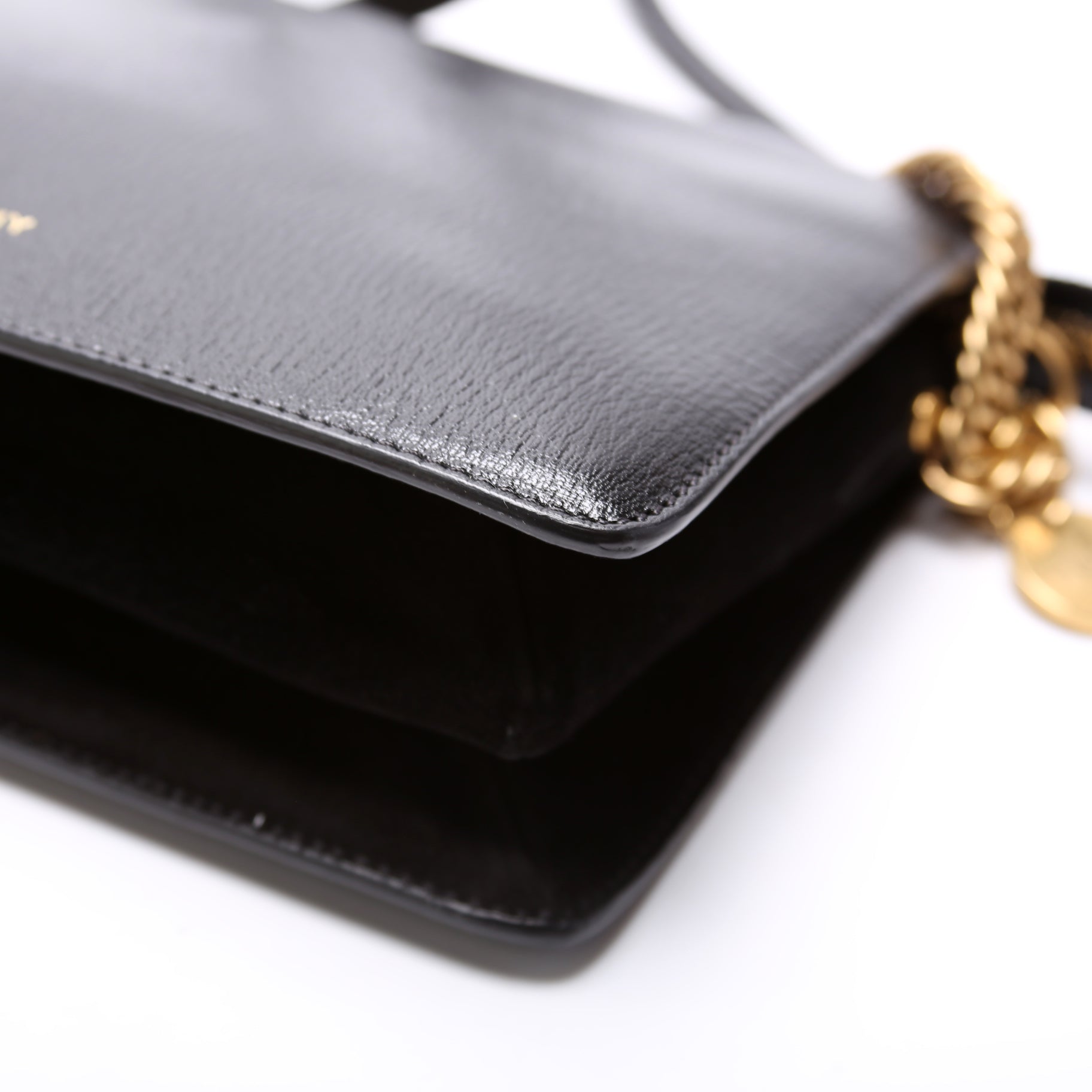 Interior: The interior is clean and free of rips or tears. The interior features one magnetic closure pocket and one zip closure pocket.