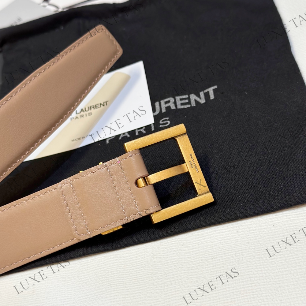 Complete your outfit with our sophisticated Belt. Featuring a Square Buckle and the iconic Cassandre logo loop, this accessory adds a touch of style to any ensemble.