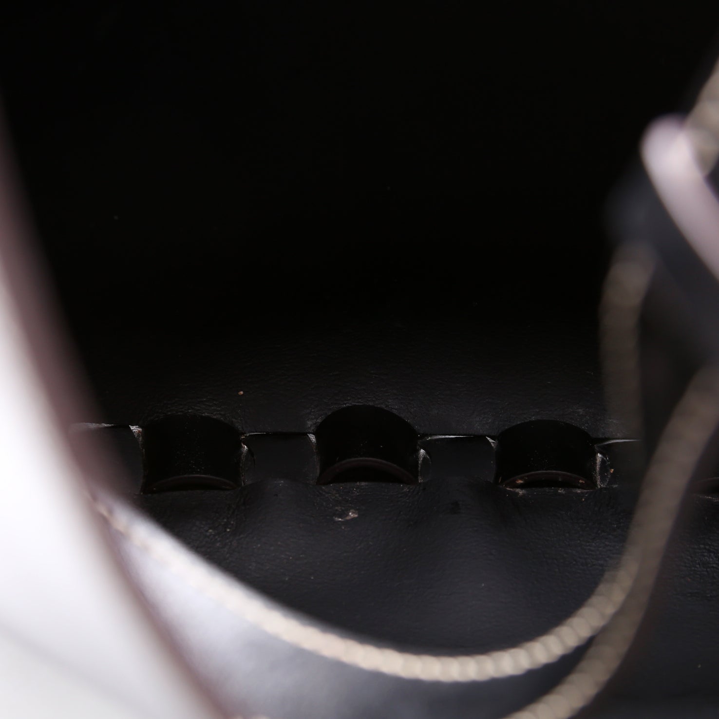 Exterior: The exterior leather shows minor scuffs along the base.