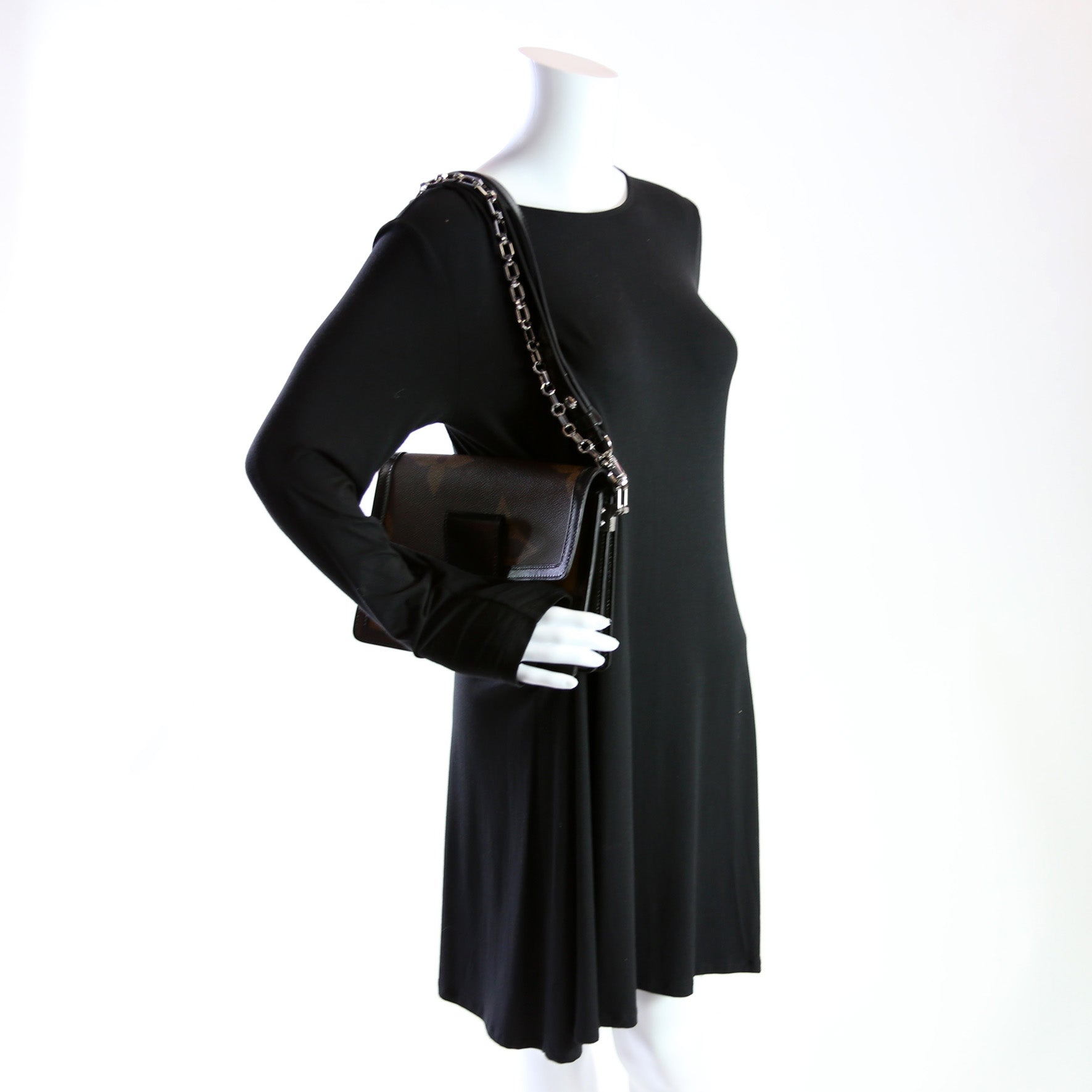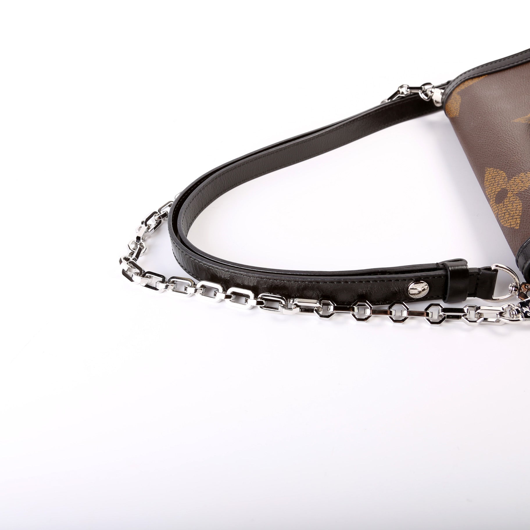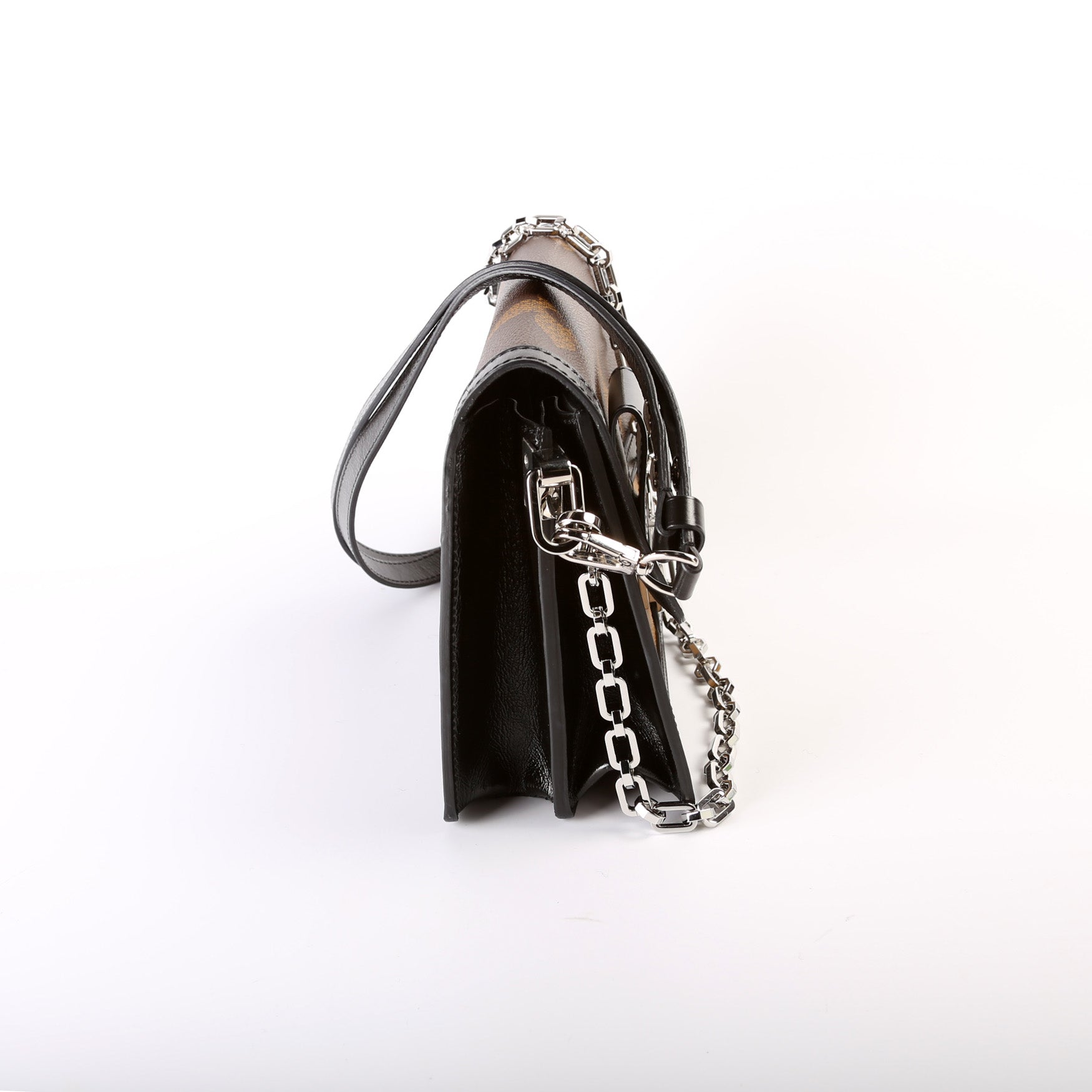 This Louis Vuitton Dauphine MMis eye catching bag. The exterior is in the Louis Vuitton Reverse Monogram coated canvas.