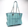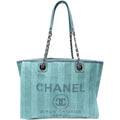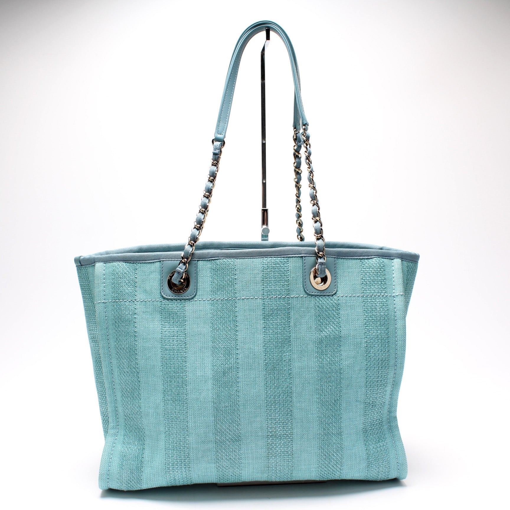 This Chanel Deauville Canvas Tote Smallis eye catching bag.