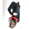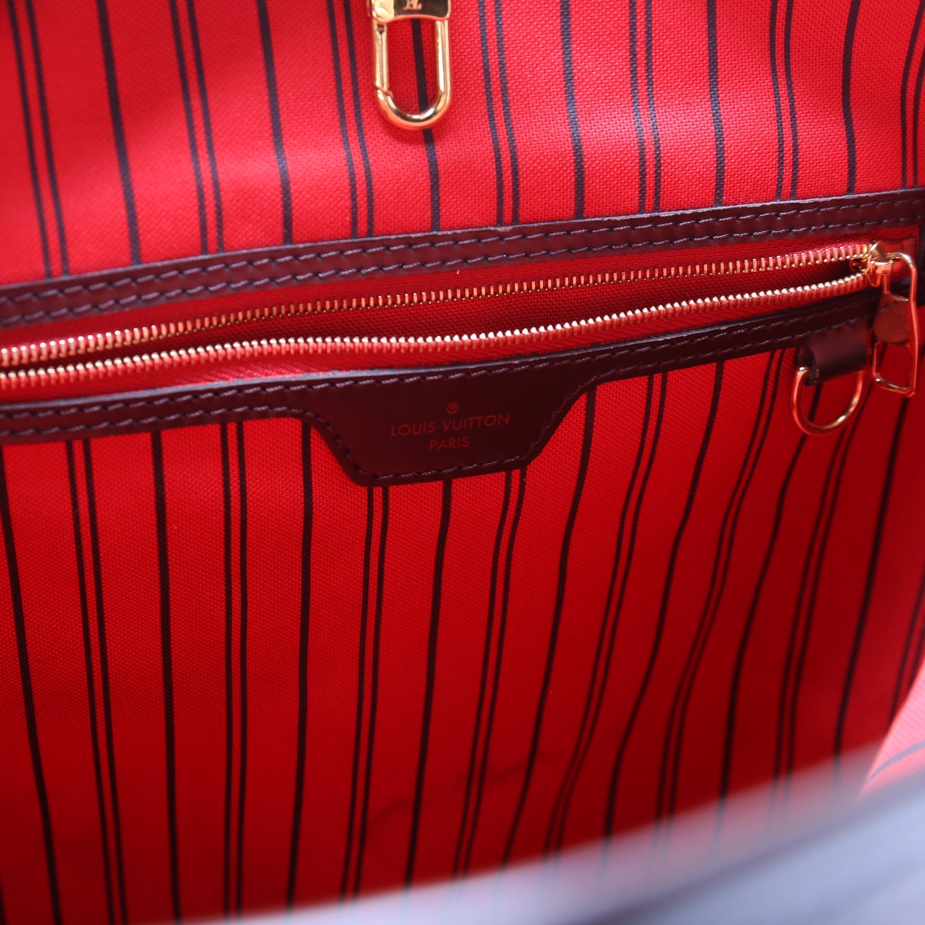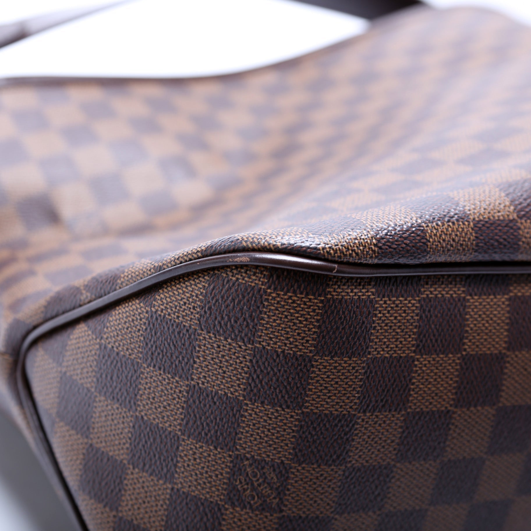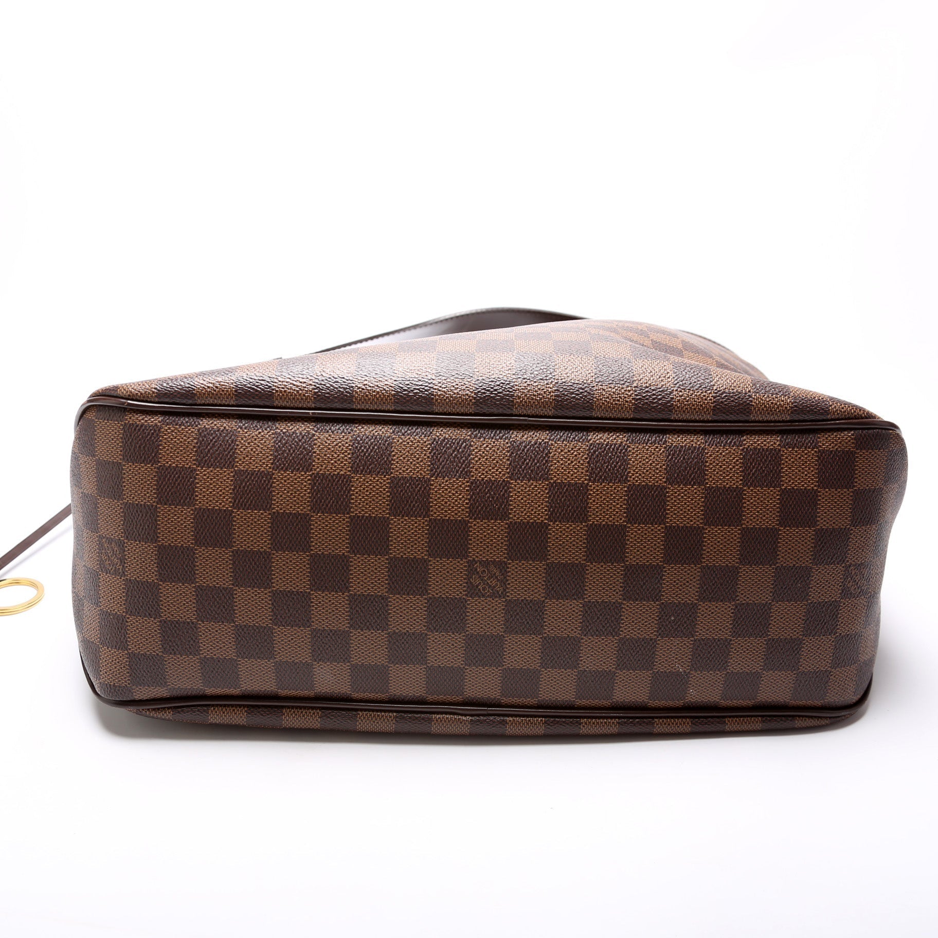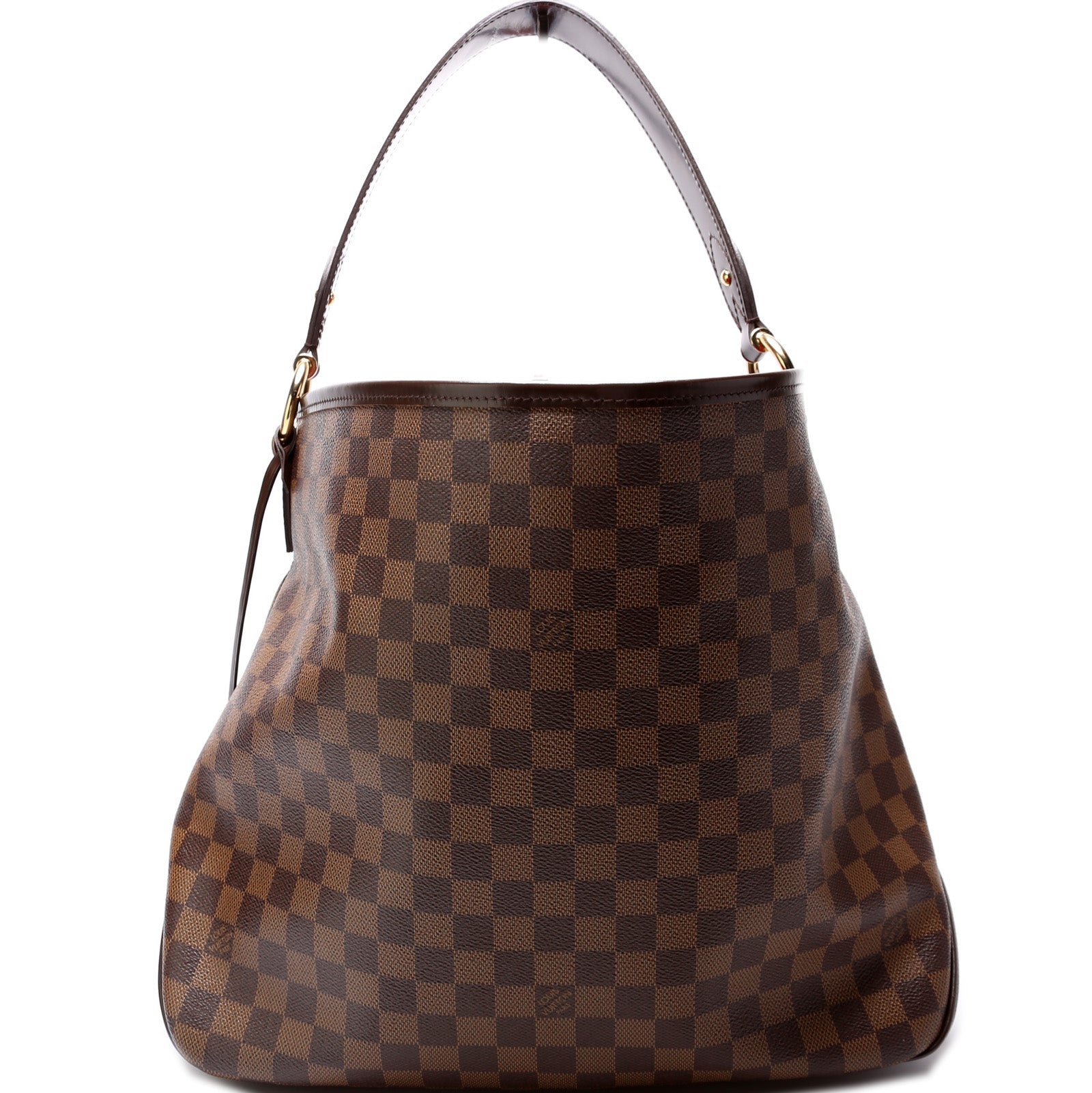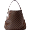 This Louis Vuitton Delightful MMis eye catching bag. The exterior is in the classic Louis Vuitton Damier Ebene coated canvas.