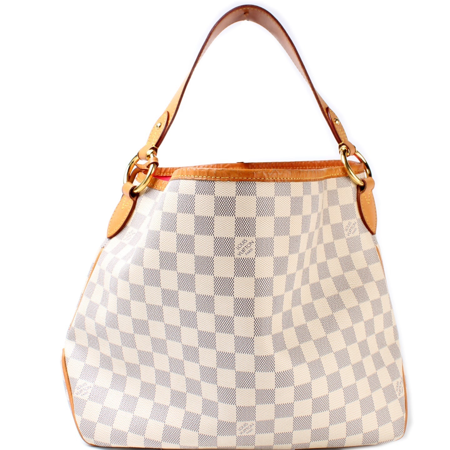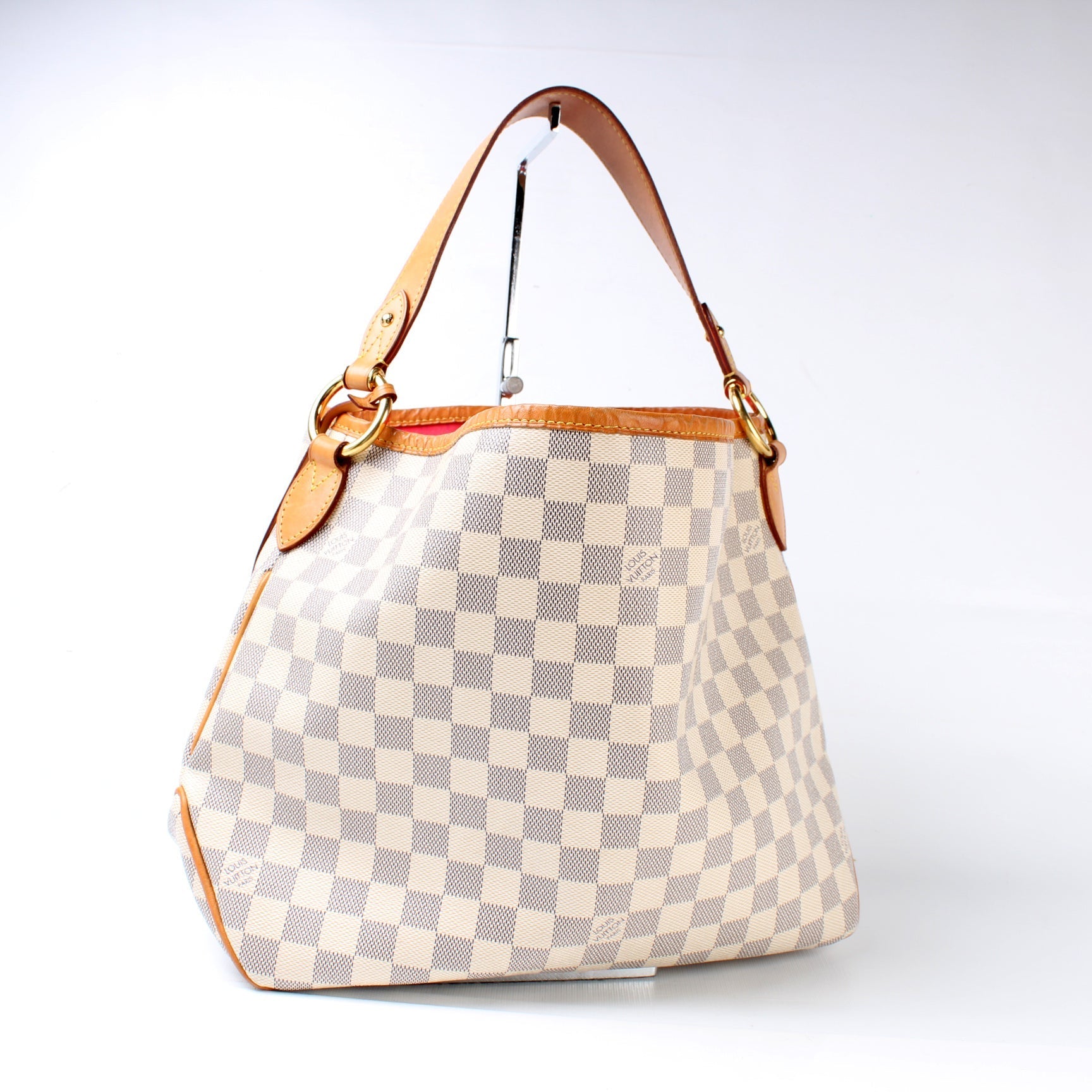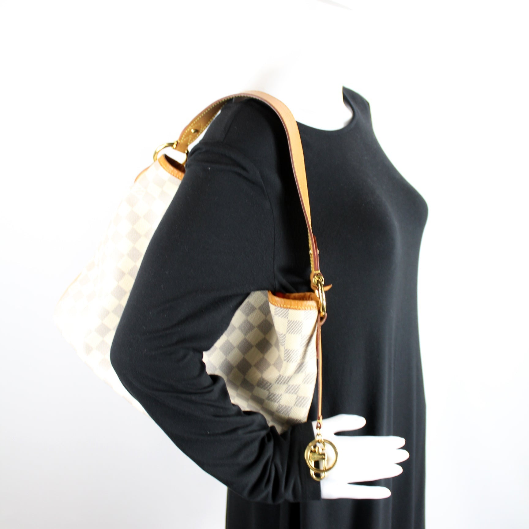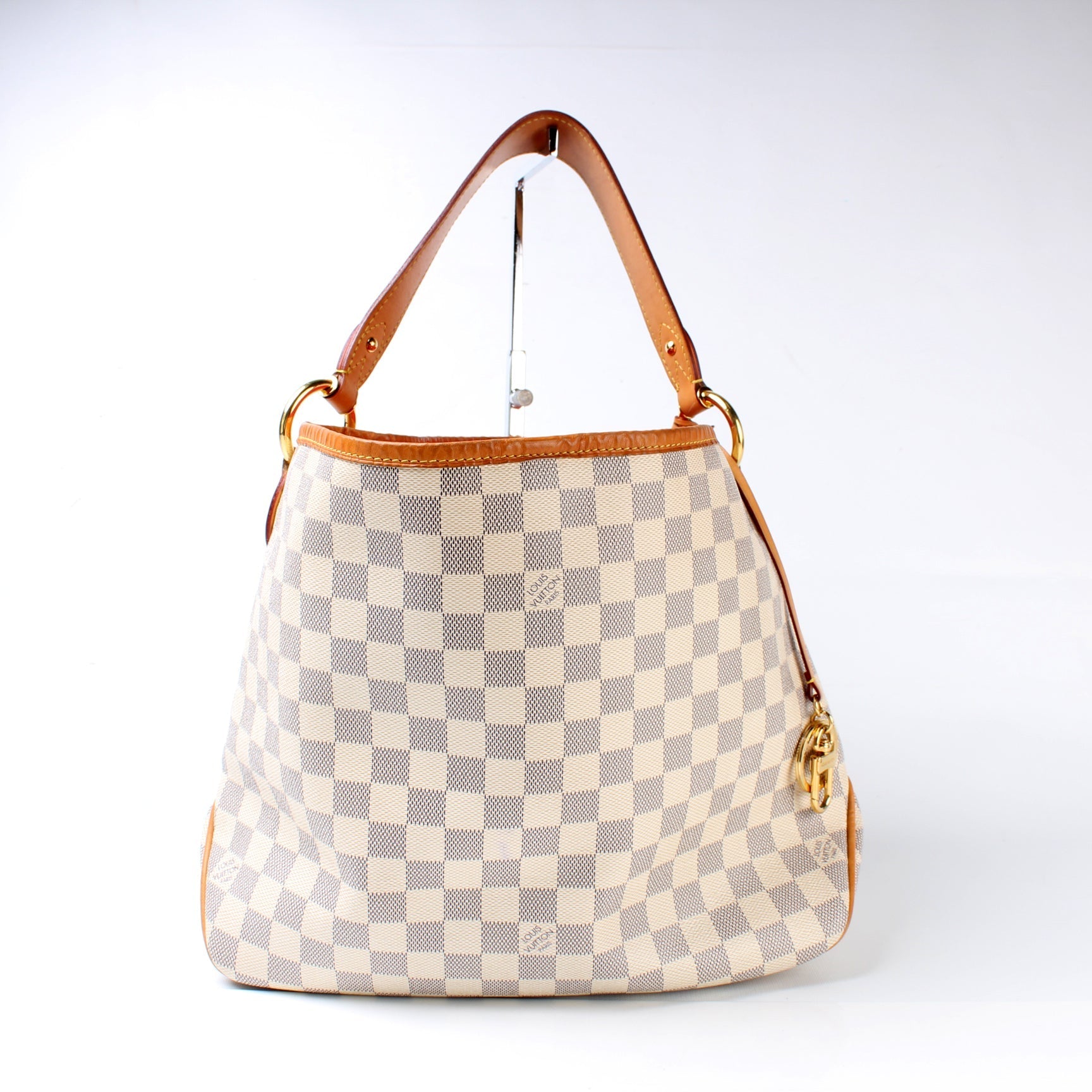 This Louis Vuitton Delightful PMis eye catching bag. The exterior is in the classic Louis Vuitton Damier Azur coated canvas.